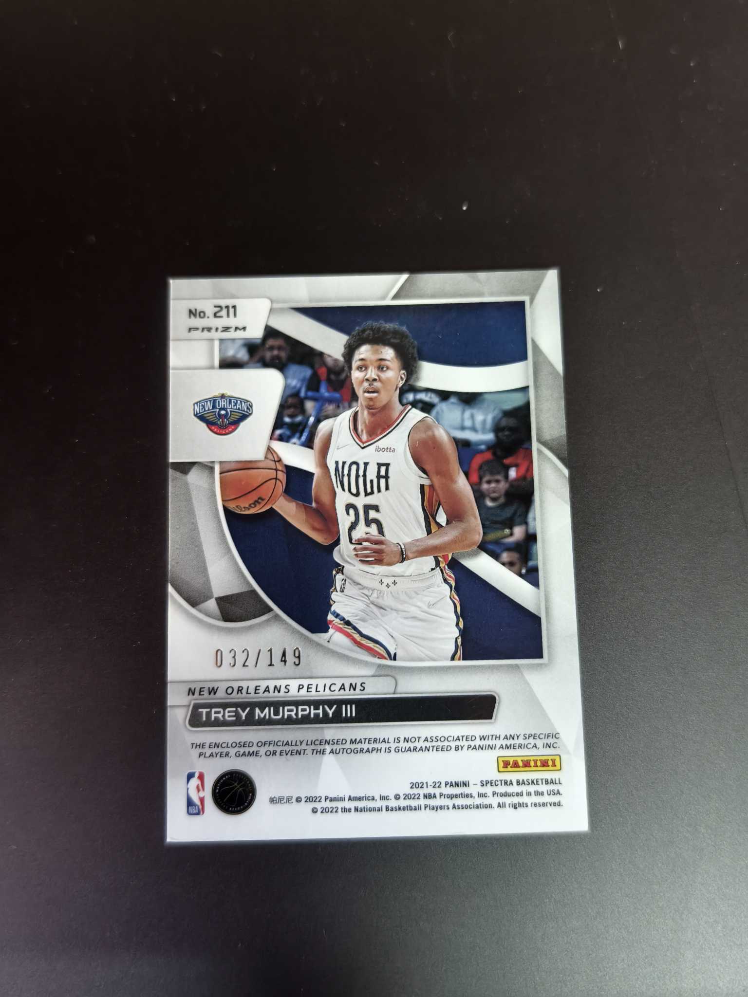 2021-22 Panini Spectra Trey Murphy III RC 光谱 鹈鹕 特雷 墨菲 149编 新秀 签字 卡签 球衣 物料 专收必备 墨迹淡如图