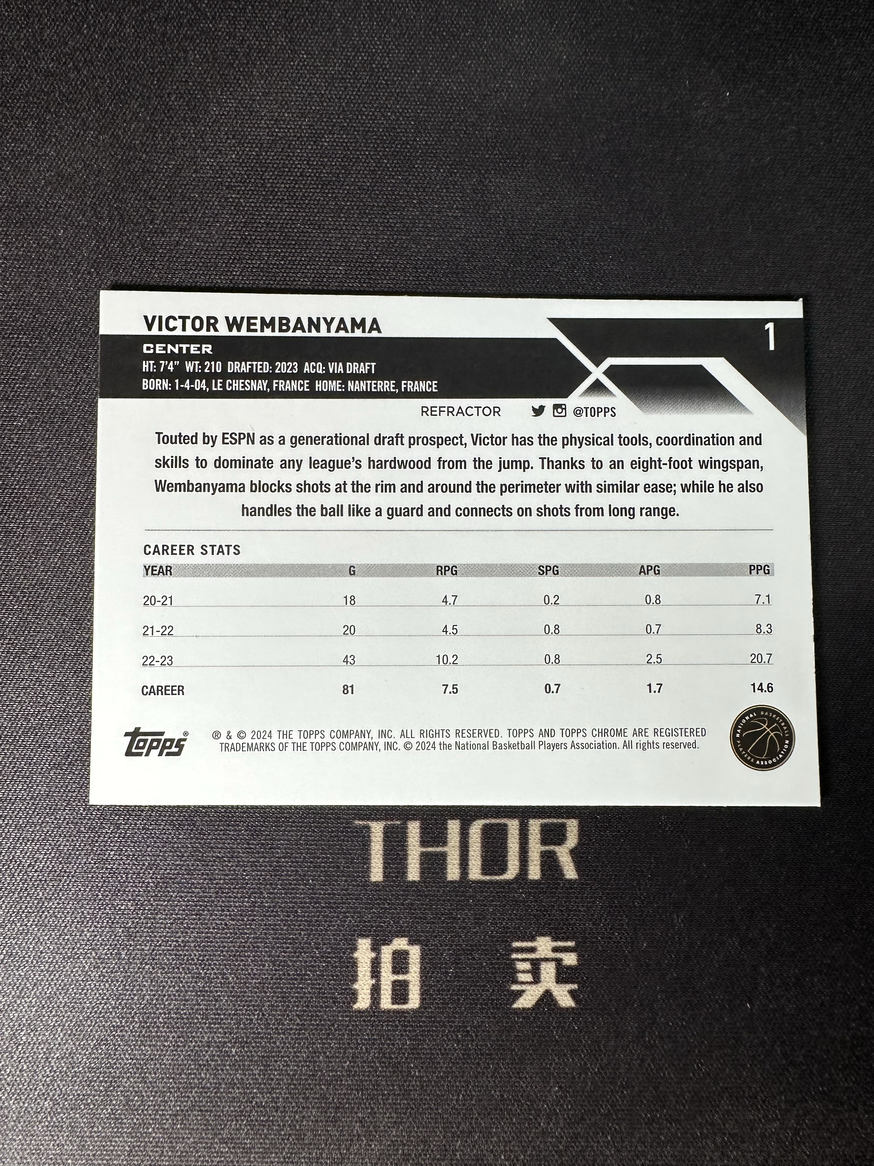 【Thor拍卖】2023-24 Topps Chrome Victor Wembanyama RC 马刺 文班亚马 新秀 银折 特卡【校长】1