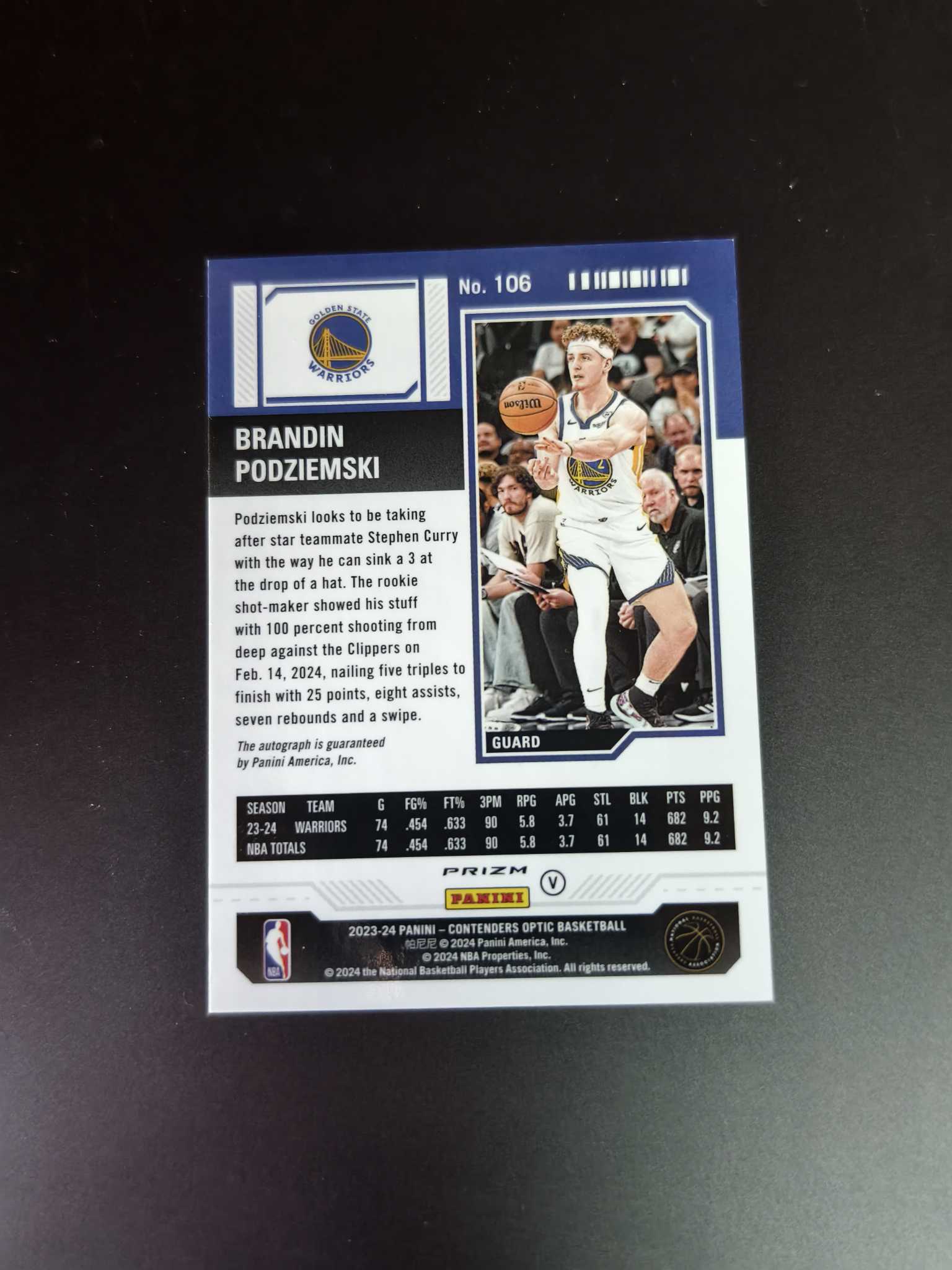 2023 Panini Contenders Brandin Podziemski RC 波杰姆斯基 新秀 球票 银折 卡签 专收必备