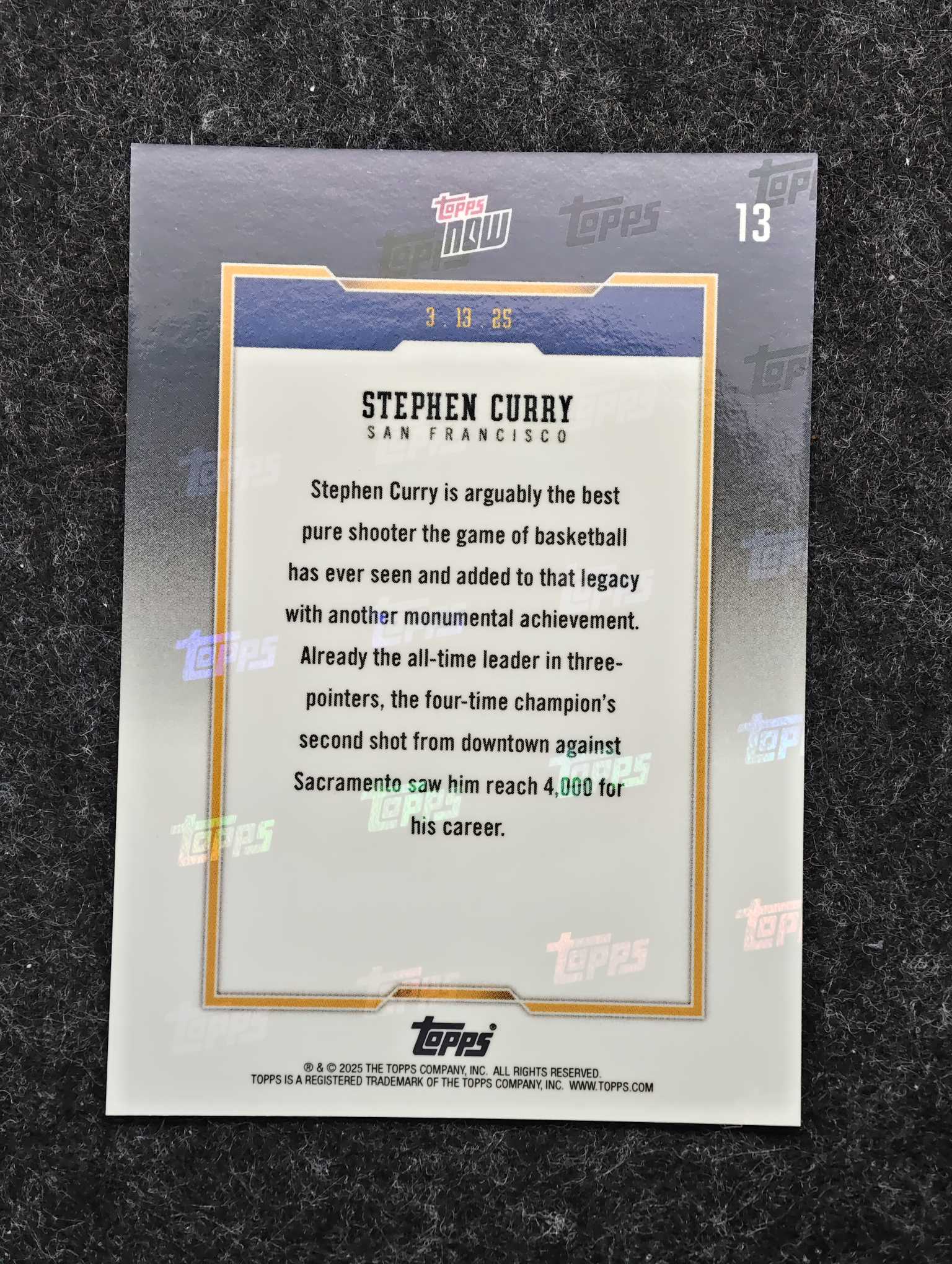 2025 Topps Now Stephen Curry 史蒂芬 库里 勇士 4000三分时刻纪念 历史三分王 mvp 收藏价值好 【PP拍卖】 sylx