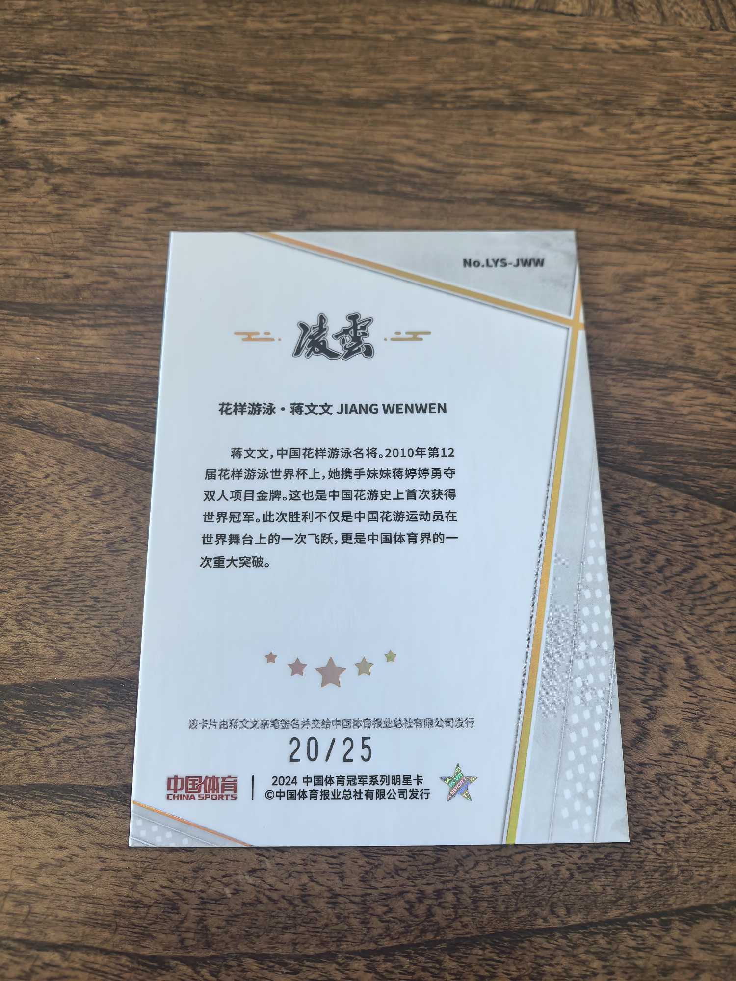 中国体育#奥运会花样游泳金牌世界冠军#蒋文文#完美签限量25编#卡品如图