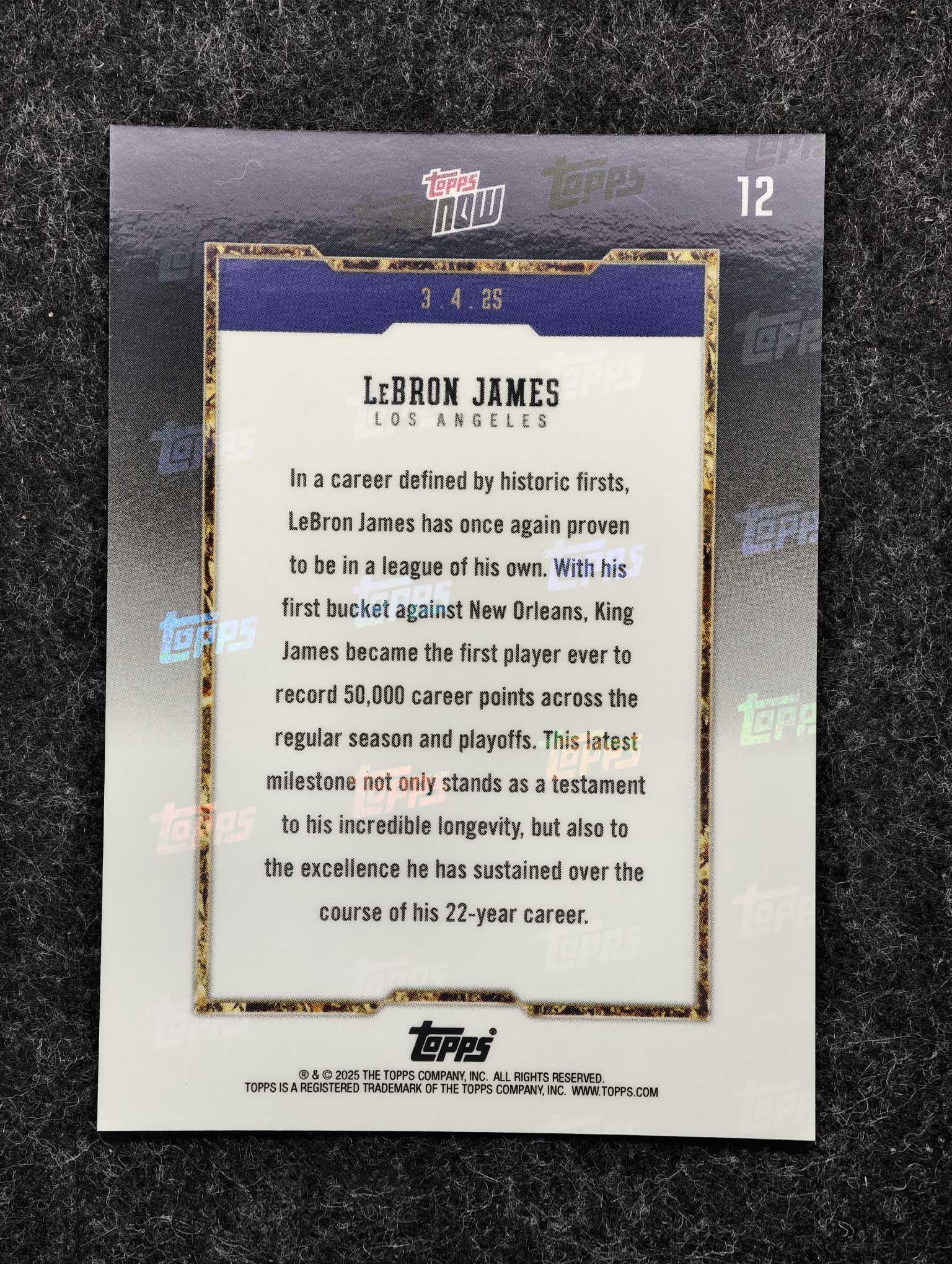 2025 Topps Now LeBron James 勒布朗 詹姆斯 湖人 五万分时刻纪念 历史得分王 mvp goat 小皇帝 收藏价值好 【PP拍卖】sylx