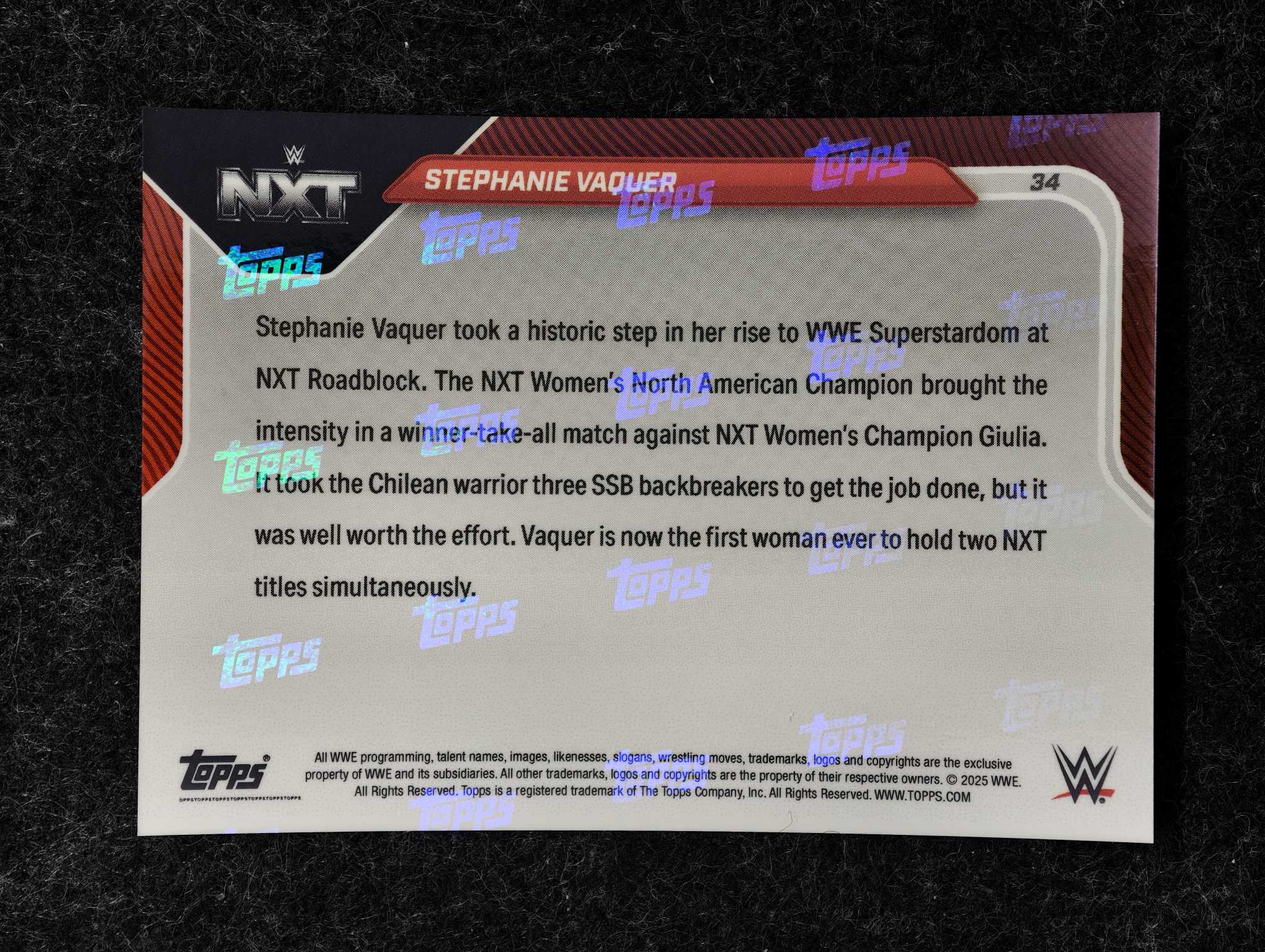 2025 Topps Now Stephanie Vaquer 史蒂芬妮 瓦奎尔 WWE NXT双冠王 夺冠时刻  冠军时刻纪念 收藏价值好 专收必备【PP拍卖】 sylx