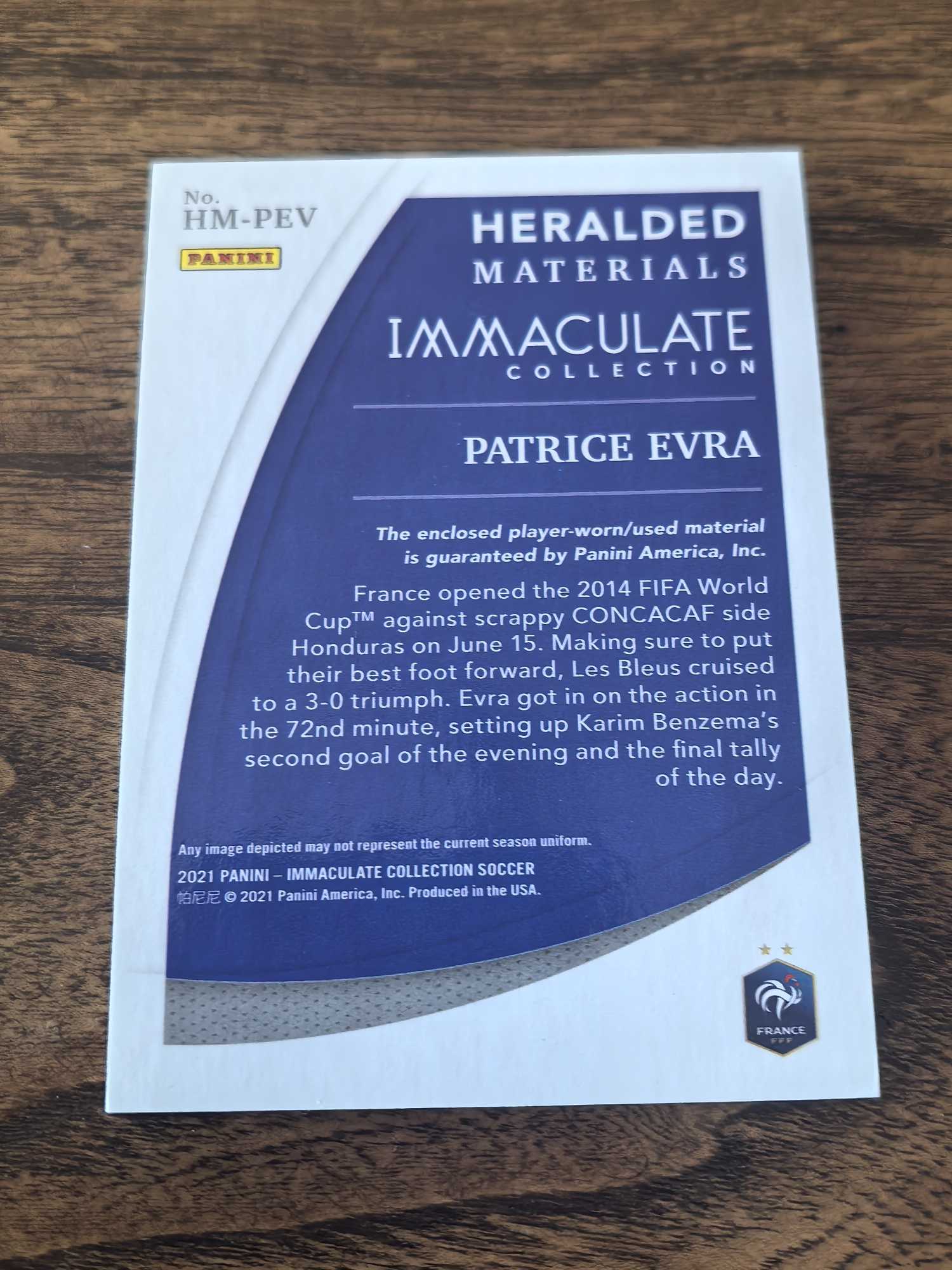 2021 Panini Immaculate Collection Patrice Evra IMM系列#法国🇫🇷名宿#曼联名将#左后卫埃佛拉#落场亲穿球衣切割限量99编,卡品如图