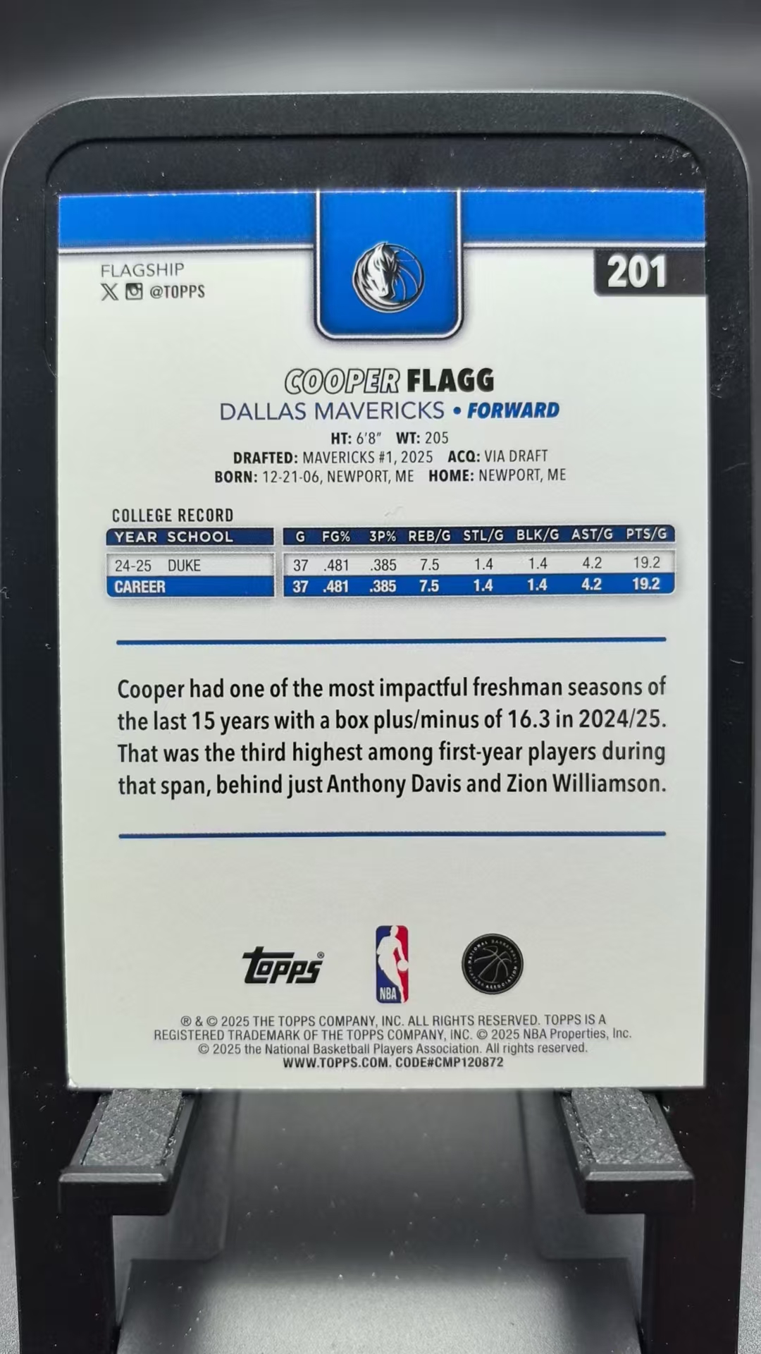 2025 Topps Flagship Cooper Flagg RC 【EC】 独行侠 新秀 状元 库珀 弗拉格 揪骡56