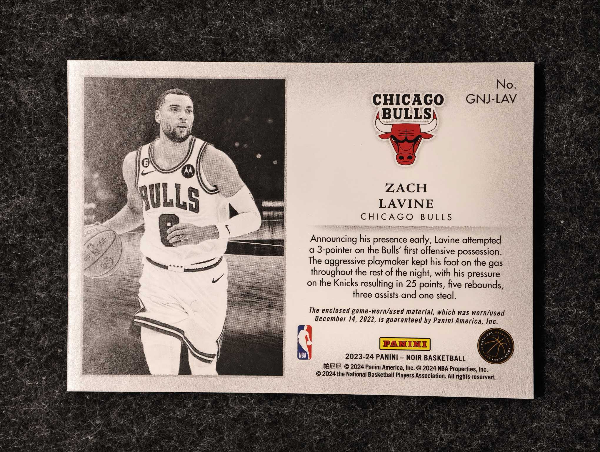 2023-24 Panini Noir Zach LaVine 扎克 拉文 Game Night Jersey /99编 2022年12月9号 打尼克斯亲穿球衣 物料patch 【PP拍卖】sylx