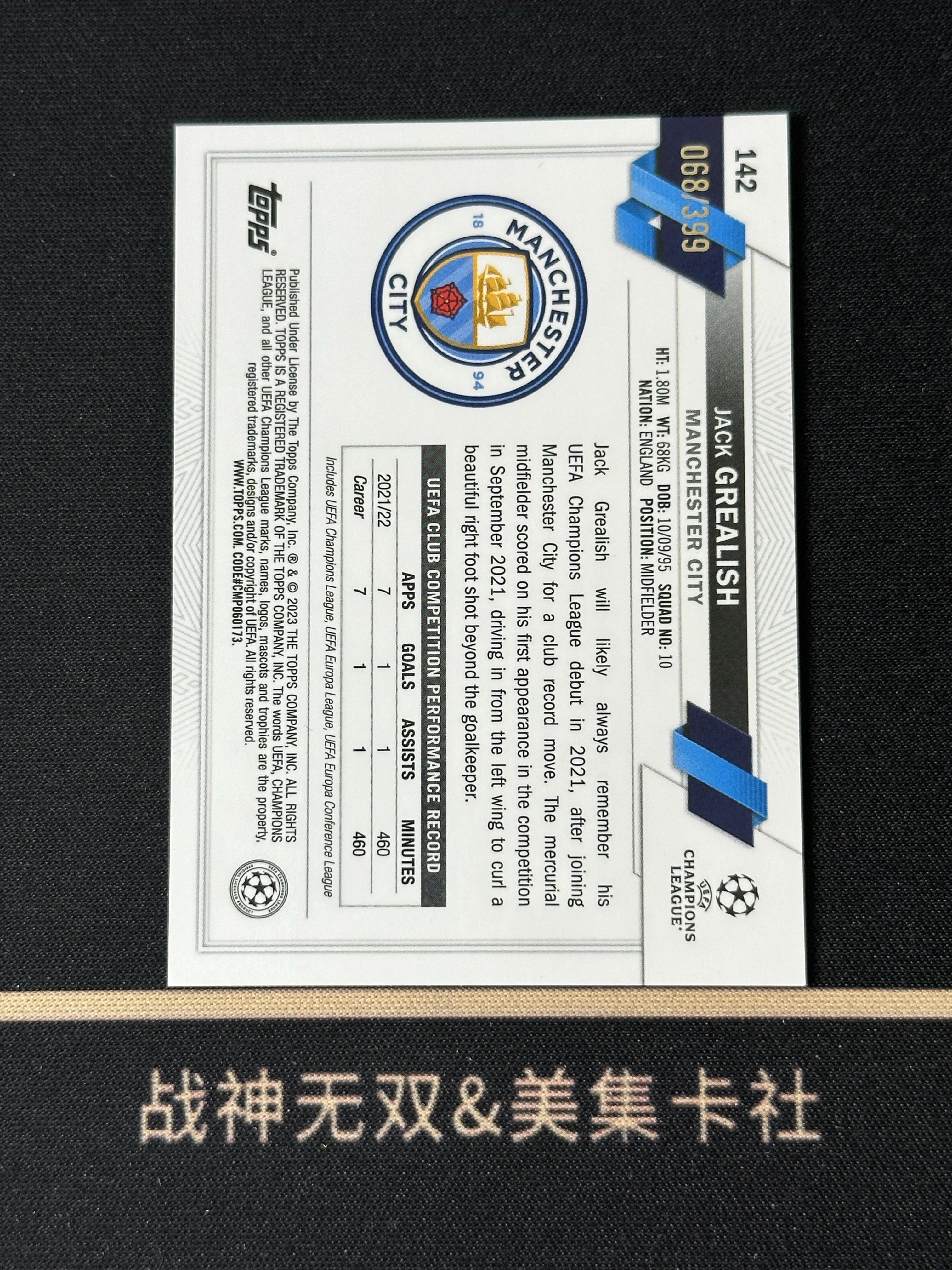 2023 Topps Chrome JACK GREALISH 杰克 格拉利什 英格兰 曼城 绿折 欧冠 399编 战神无双 (大熊)