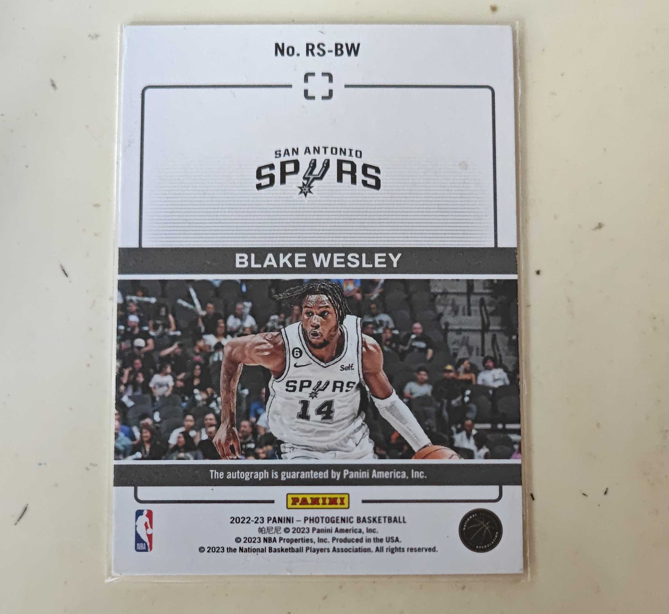 2022-23 Panini PaniniPhotoGenicNBA Blake Wesley RC 布雷克 韦斯利 新秀 上镜 签字 马刺 文班亚马队友 专收