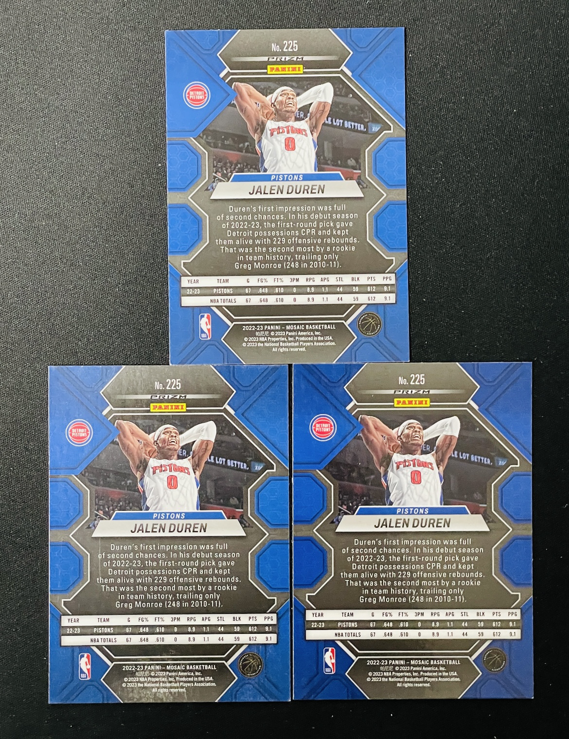 2022-23 Panini Mosaic Jalen Duren RC 【飞飞代卖】活塞 新秀 杰伦 杜伦 红波纹 银折 红绿马赛克 折射 3张打包 专收凑套必备