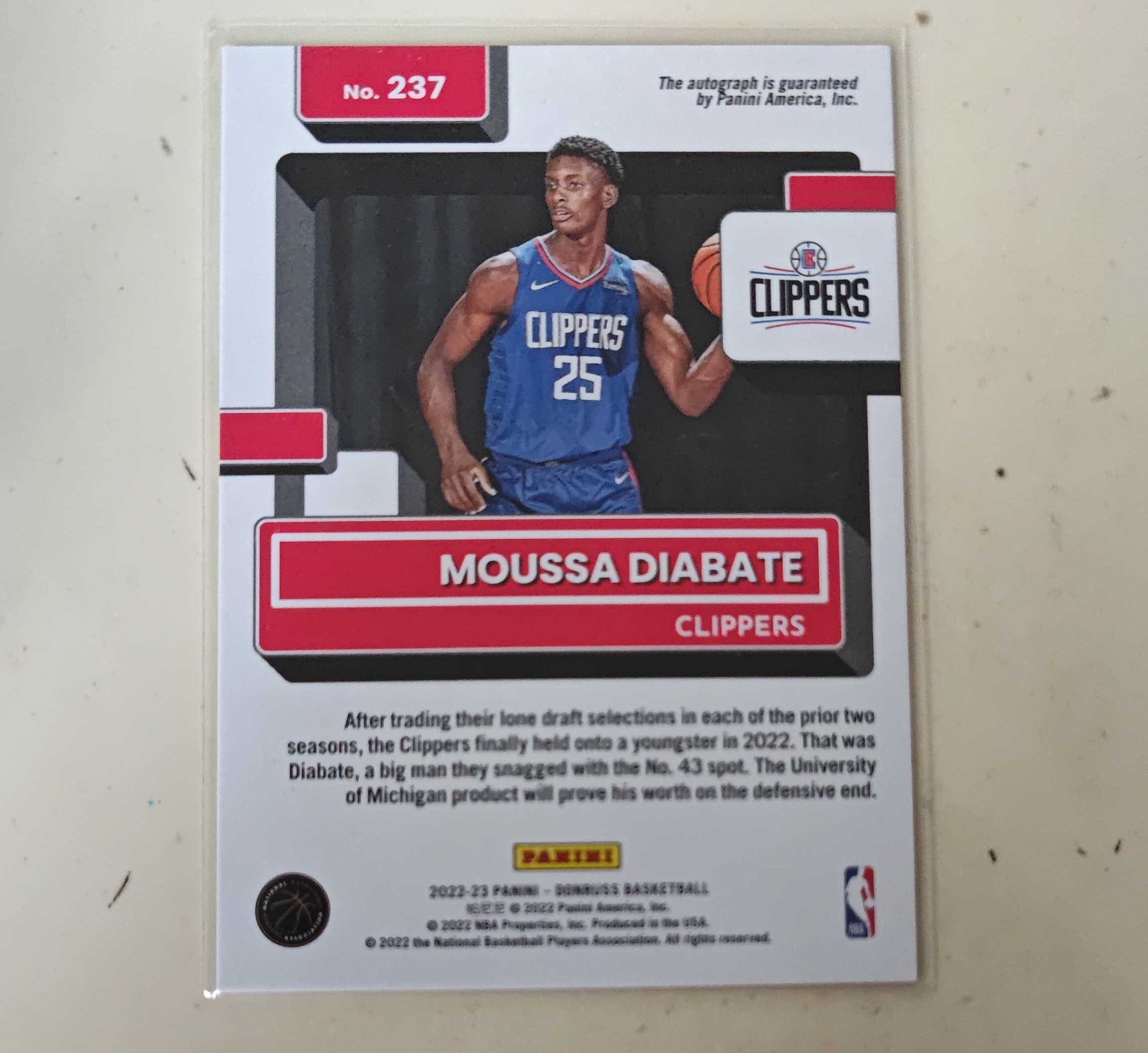 2022-23 Panini Donruss Moussa Diabate RC 穆萨 迪亚巴特 新秀  杜蕾斯 迷宫折 折射 mojo 签字 Rookie 快船 潜力中锋