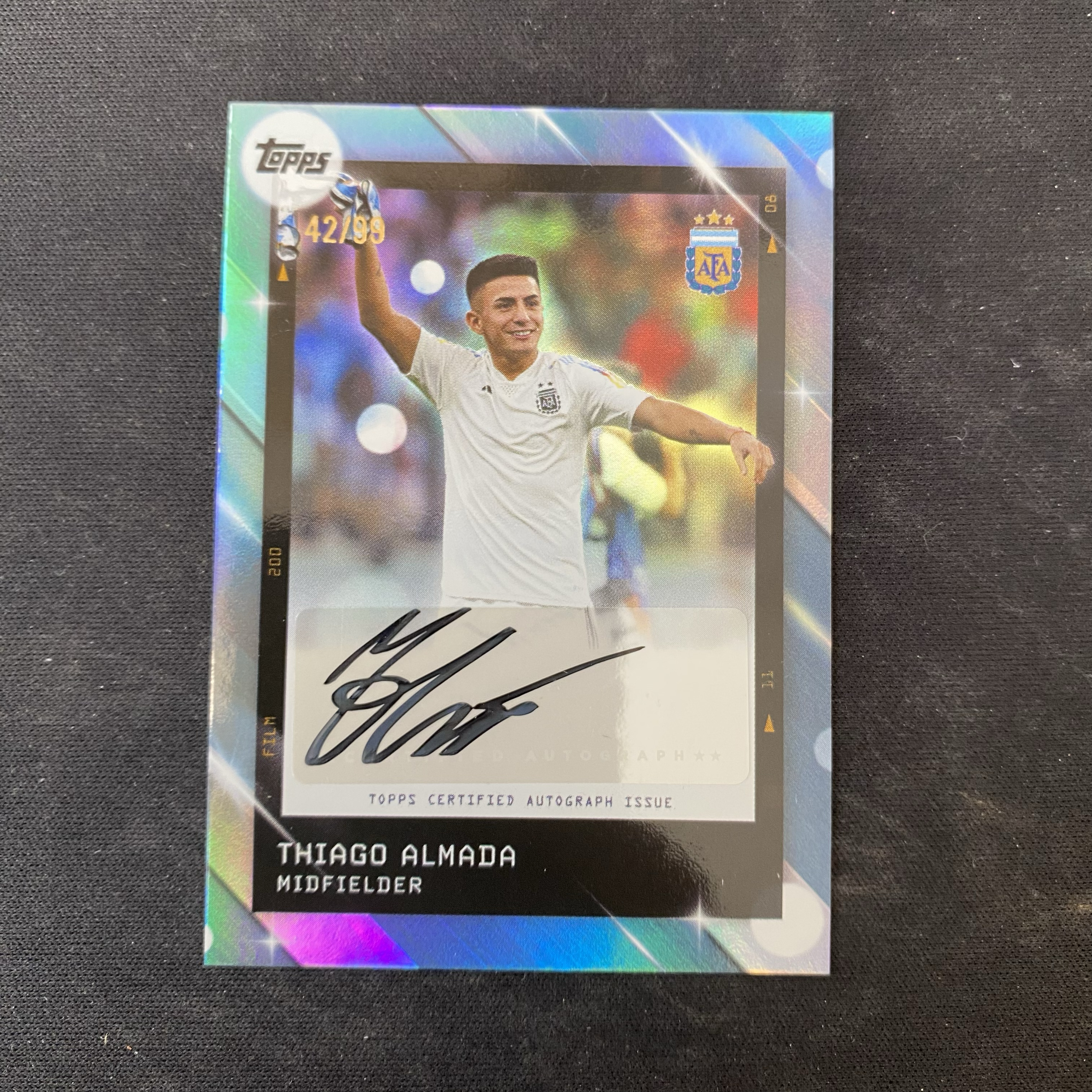 2025 Topps Focus Thiago almada 【星集卡代卖】郭峰1119 阿根廷聚焦队盒 蒂亚戈 阿尔马达 签字 42/99编 蓝折 折射