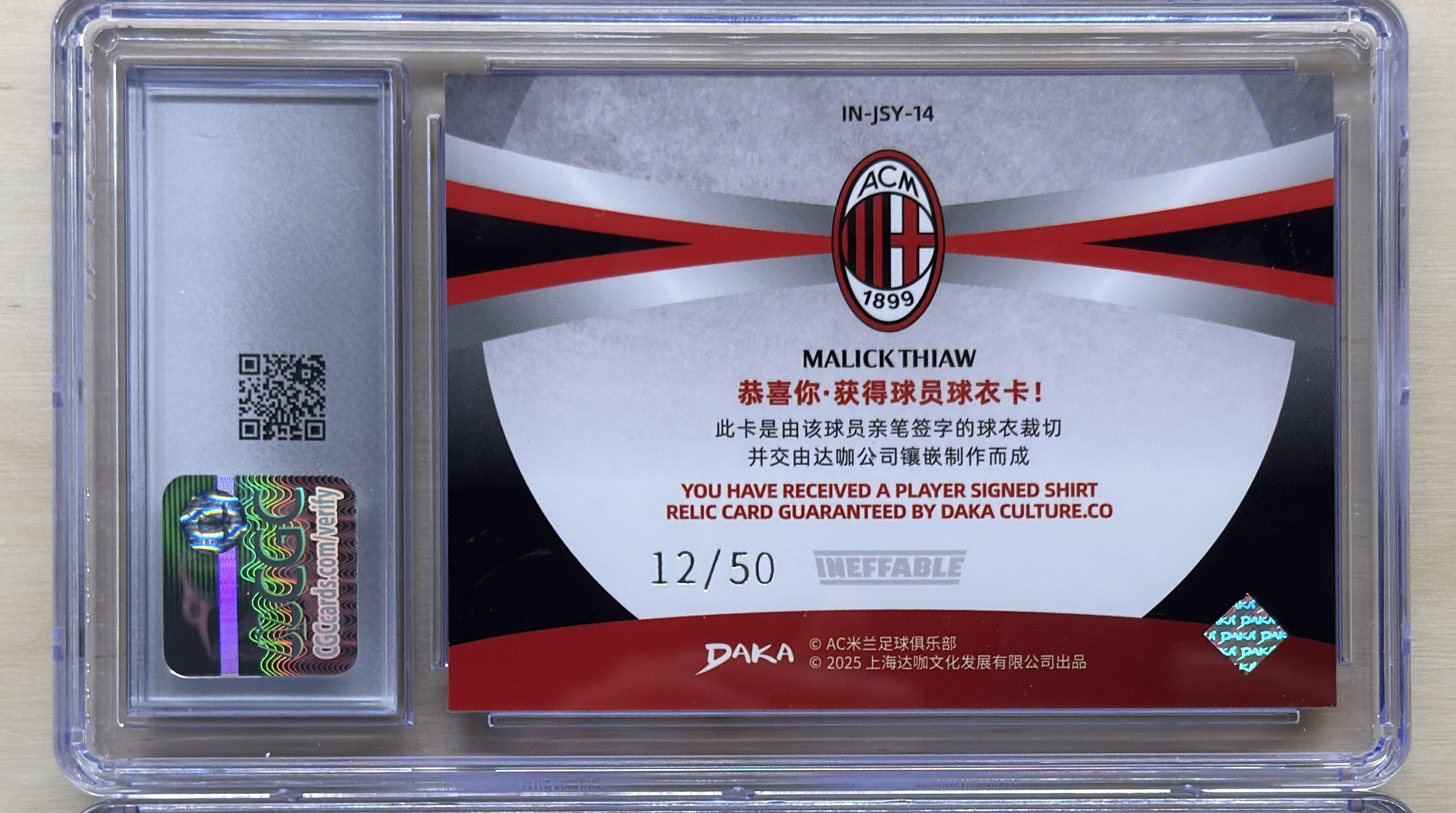 2024 DAKA AC Milan Malick Thiaw 全新DakaAC米兰队盒 马利克 佳夫 12/50编 球衣衣料物料实物切割 CGC9分 设计好看 卡品如图 值得收藏