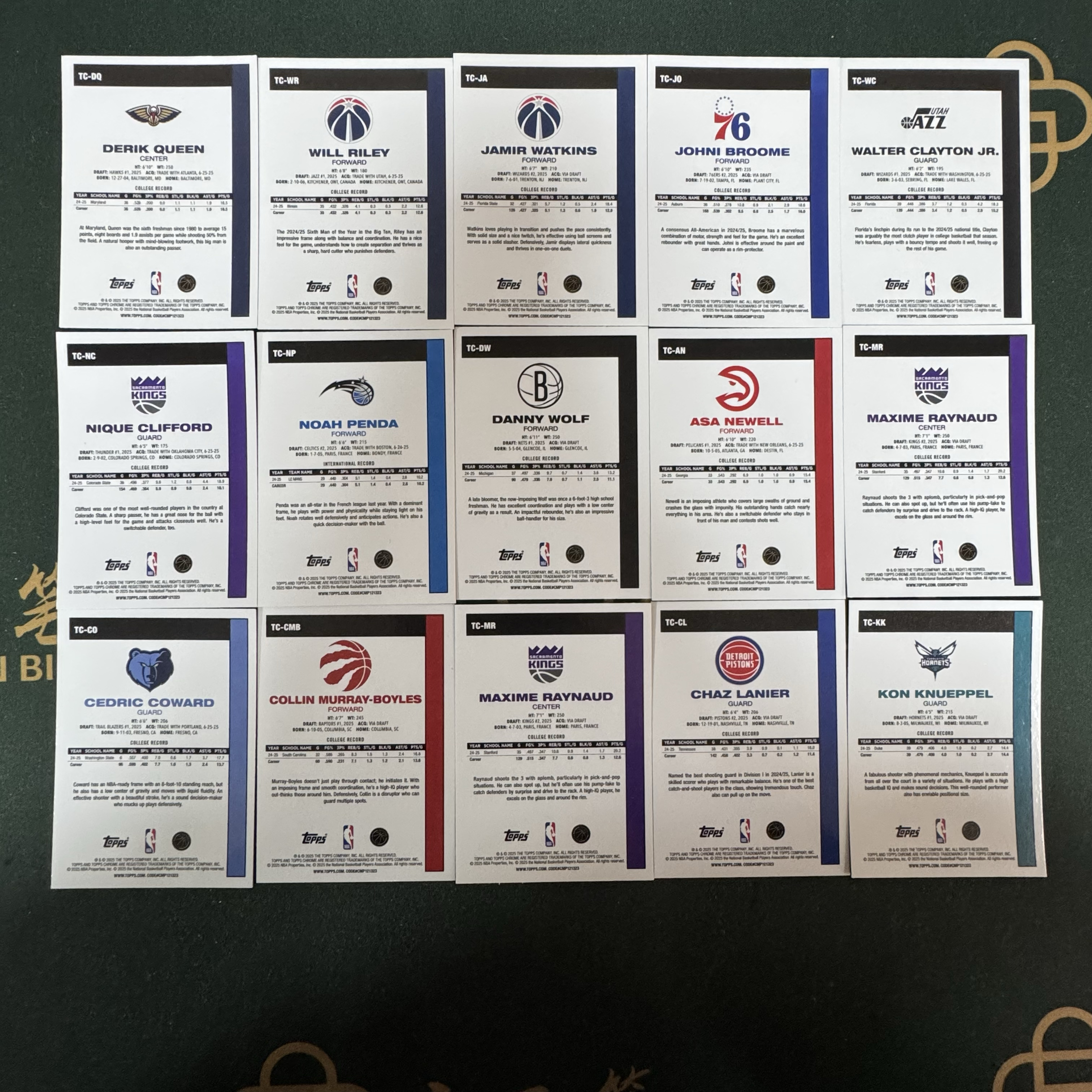 2025-26 Topps Flagship Asa Newell RC 【十三笔】 复古特卡 RC 新秀 德里克 奎因 鹈鹕 康 克尼普尔 黄蜂 阿萨 纽厄尔 老鹰 折射 打包15张 卡品如图
