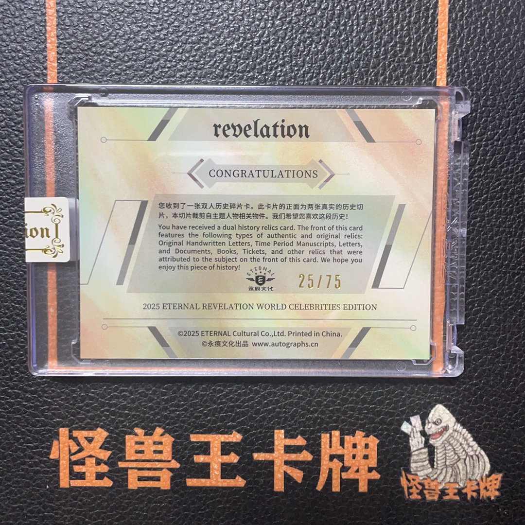 (怪兽拍卖) GSW-B35 2 2025 ETERNAL REVELATION 永痕文化 启示录系列 莎士比亚 英国诗人剧作家、达芬奇 意大利画家自然科学家 双人实物 75编 原封砖
