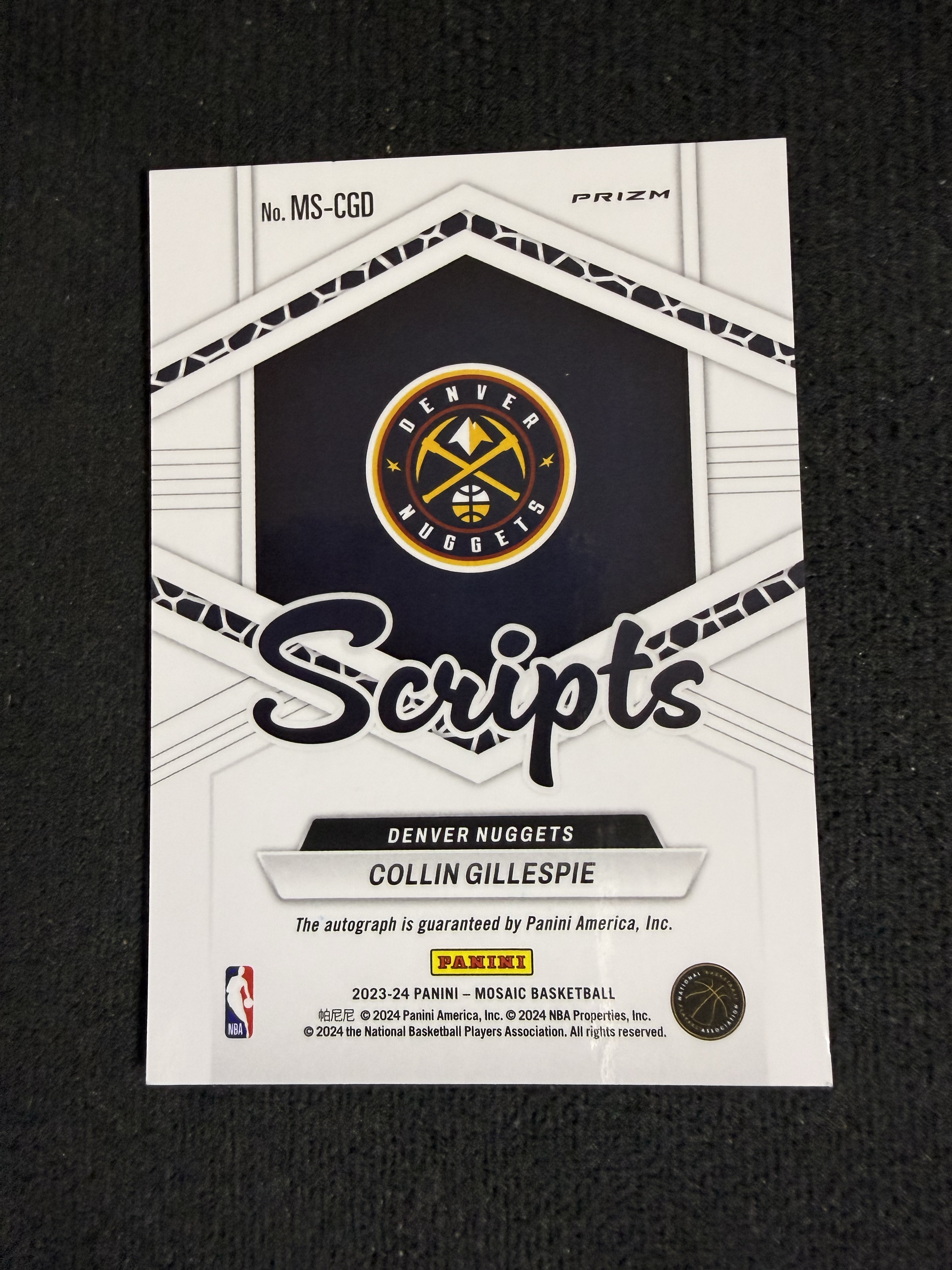 2023-24 Panini Mosaic Collin Gillespie 马赛克 掘金 科林 吉莱斯皮 签字 马赛克折 (宇哥)