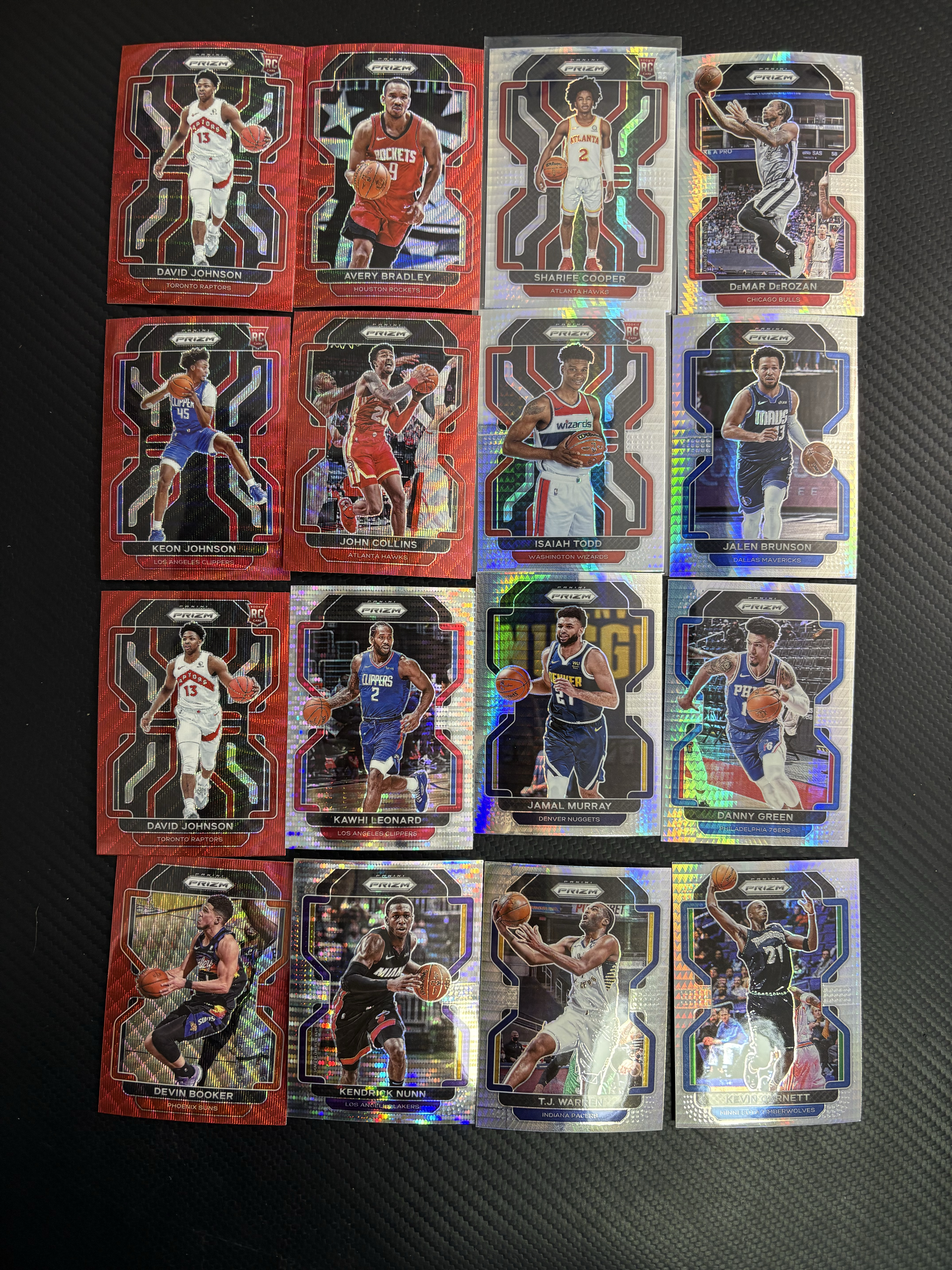 【面包拍卖】 21-22 panini prizm 红波纹 hyper 脉冲折 rc 新秀 戴维 约翰逊 约翰 考林斯 卡哇伊 布克 加内特 德罗赞 贾马尔 穆雷 等共16张 lot不保卡品  冲冲冲
