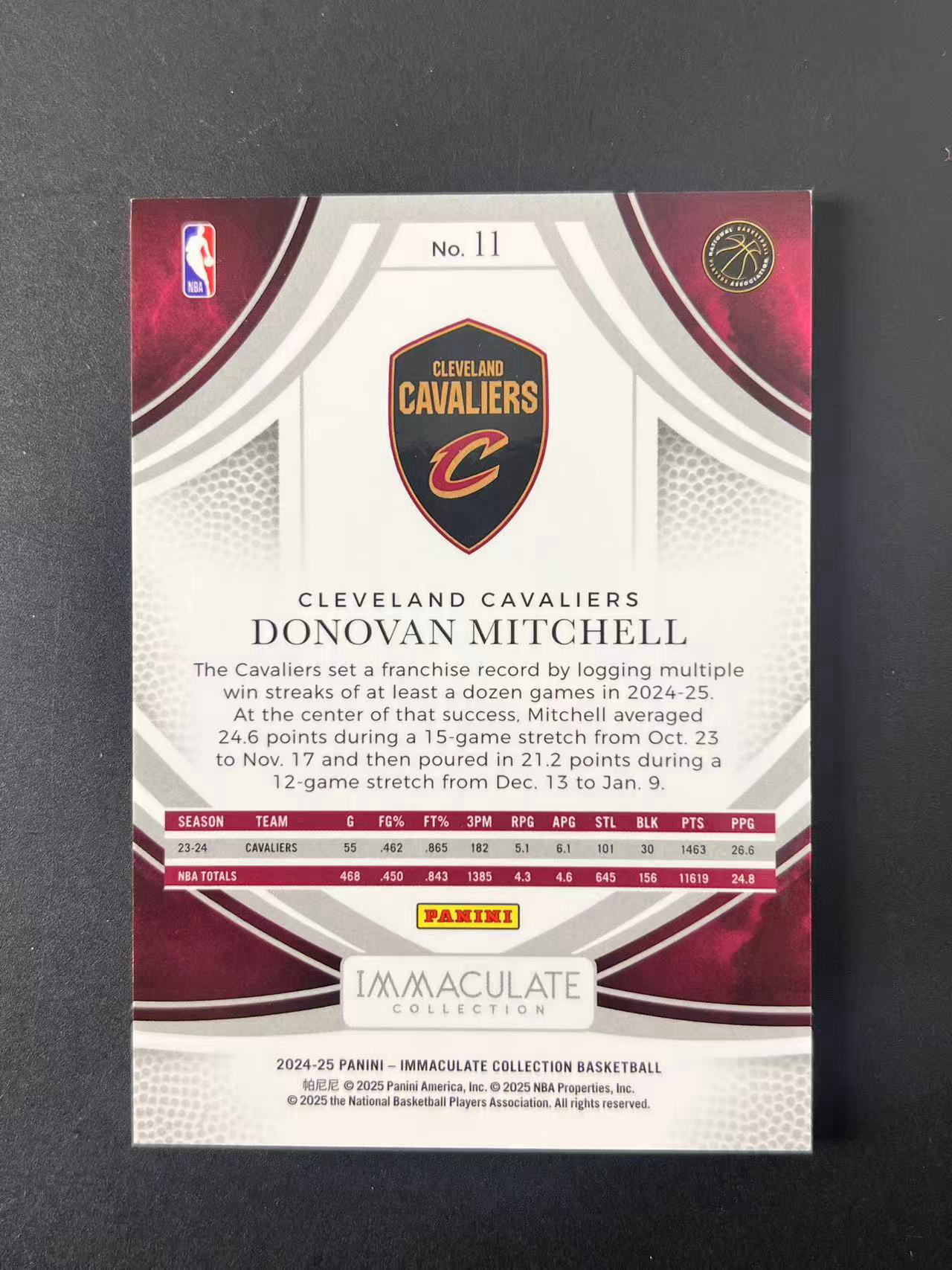 2024-25 Panini Immaculate Donovan Mitchell【卡老鼠代卖】 爱咪咪 骑士 多诺万 米切尔 大米球 base /25编 蓝平行 川哥 寄付