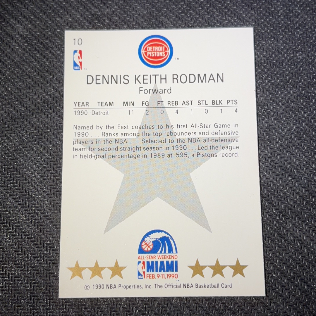 1990 Panini NBA Hoops All-Star Dennis Rodman 公牛 丹尼斯 罗德曼 大虫 全明星赛特卡 乔丹 皮蓬 科比 队友 篮板王 樱木花道原型 实卡精美 收藏必备