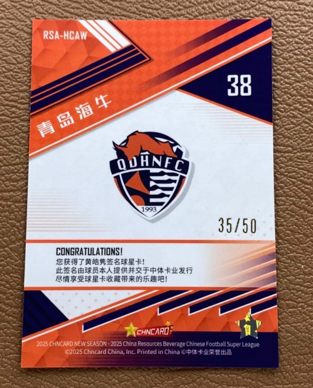 2025 中体卡业 CSL NEW SEASON(新赛季) 黄皓隽 RC 1st 中超新赛季 新秀 明日星 签字 青岛海牛 香港籍 年轻港脚 35/50编 银折 折射