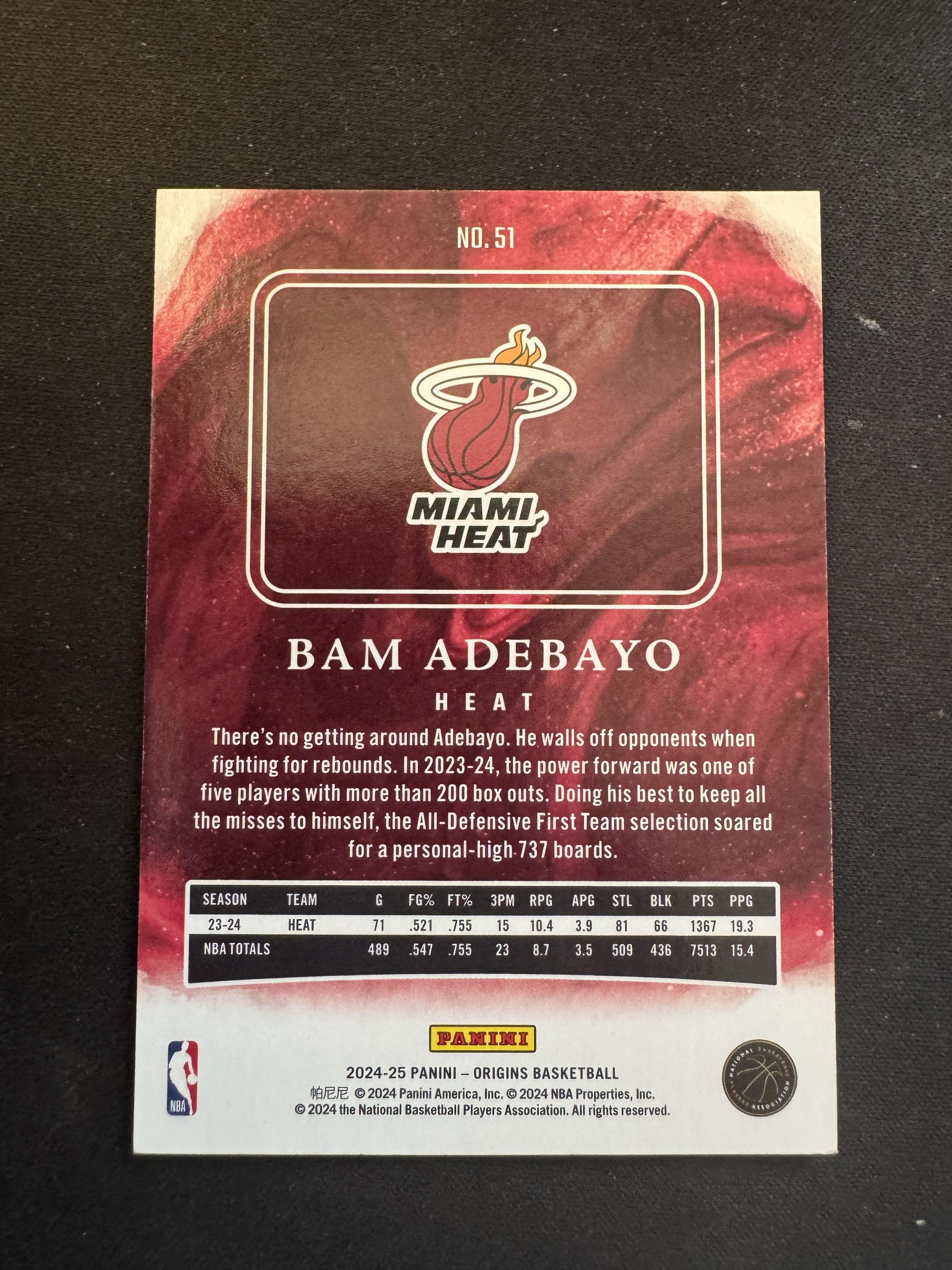 2024-25 Panini Origins Bam Adebayo 【农夫】帕尼尼 起源系列 巴姆 阿德巴约 热火 112/115编 红折 折射 卡品如图《唐11.19