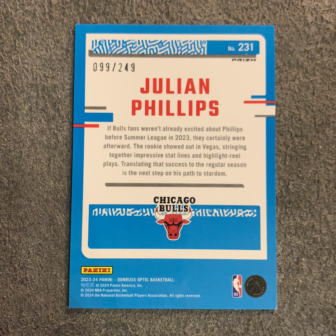 2023-24 Panini Optic Julian Phillips RC 新秀 朱利安 菲利普斯 天蓝折 /249编 optic杜蕾斯 公牛队新星 布泽利斯 吉迪队友 卡品如图