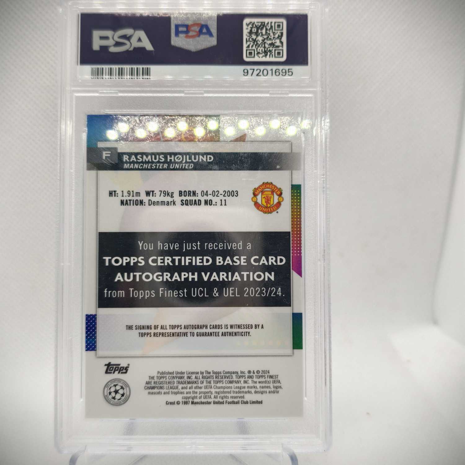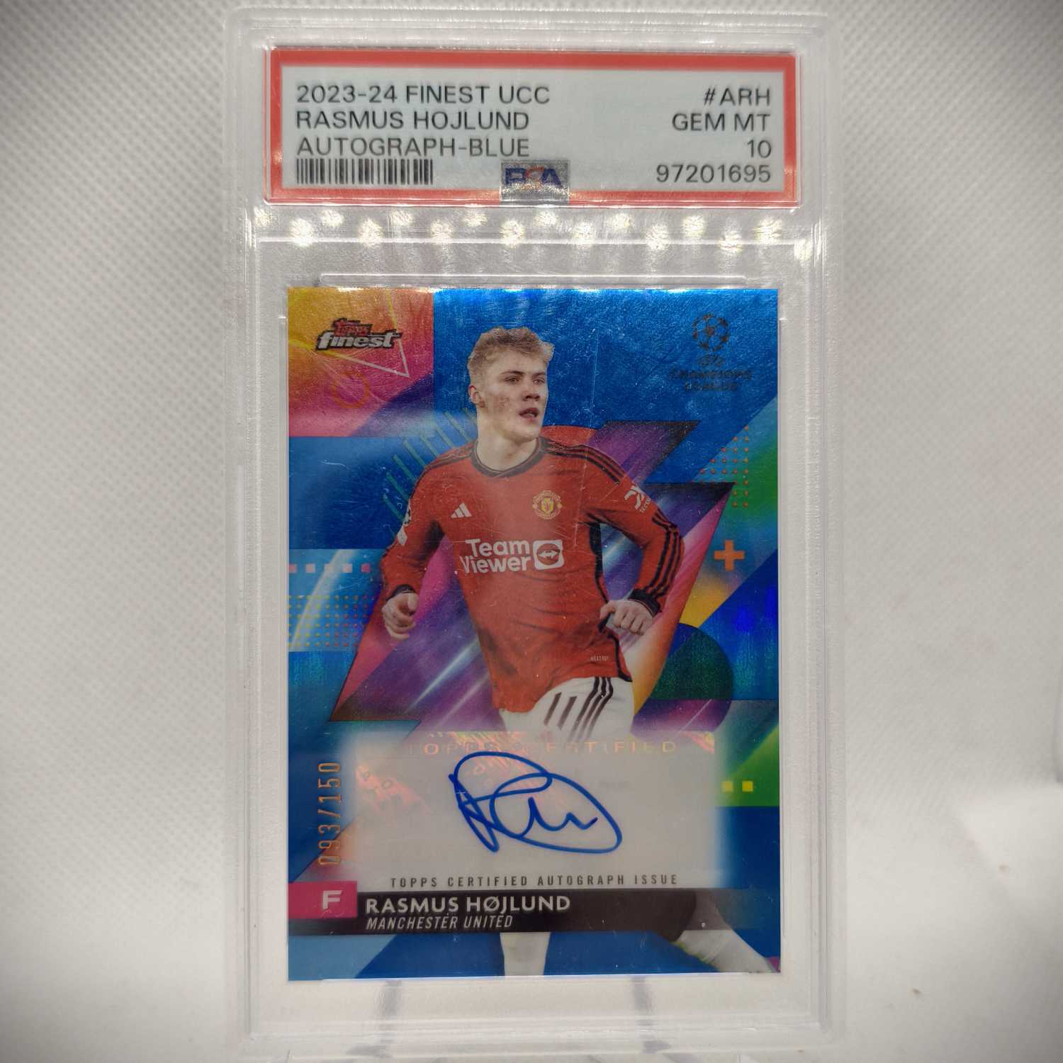 2024 Topps Finest rasmus hojlund 曼联 霍伊伦德 093/150 psa评级 10分 签字 贴签 墨迹清晰 卡品完好【大山球星卡】不累计