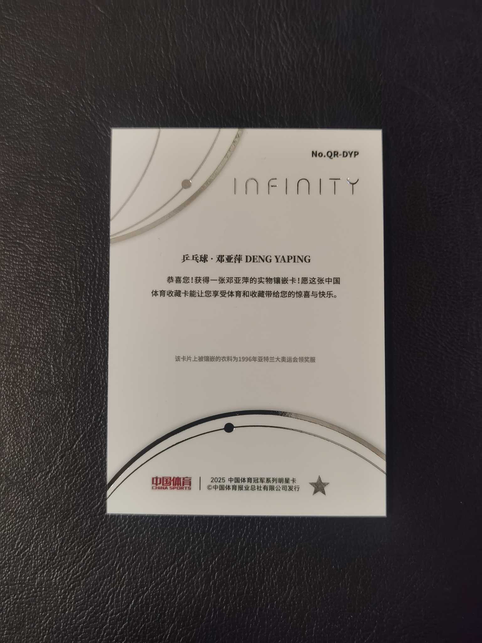 2025 中国体育 Infinity 邓亚萍 49编 衣料实物切割 乒乓球 带编【ycy 烤鱼】