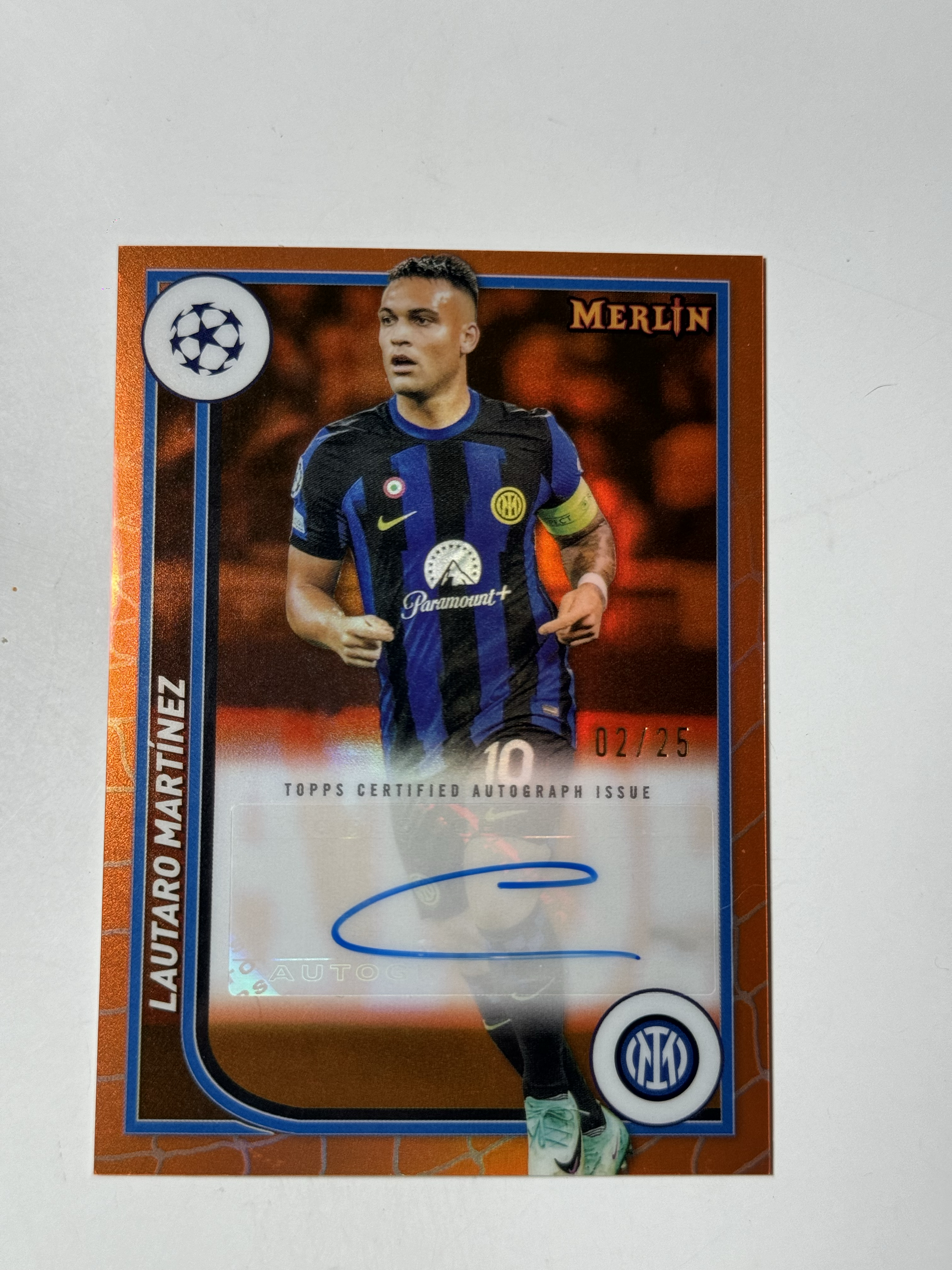 2023-24 Topps Merlin chrome Lautaro Martínez 欧冠 梅林 国际米兰 阿根廷 劳塔罗 马丁内斯 02/25编 低编 橙折 签字 梅西恩佐 卡品精美 收藏必备