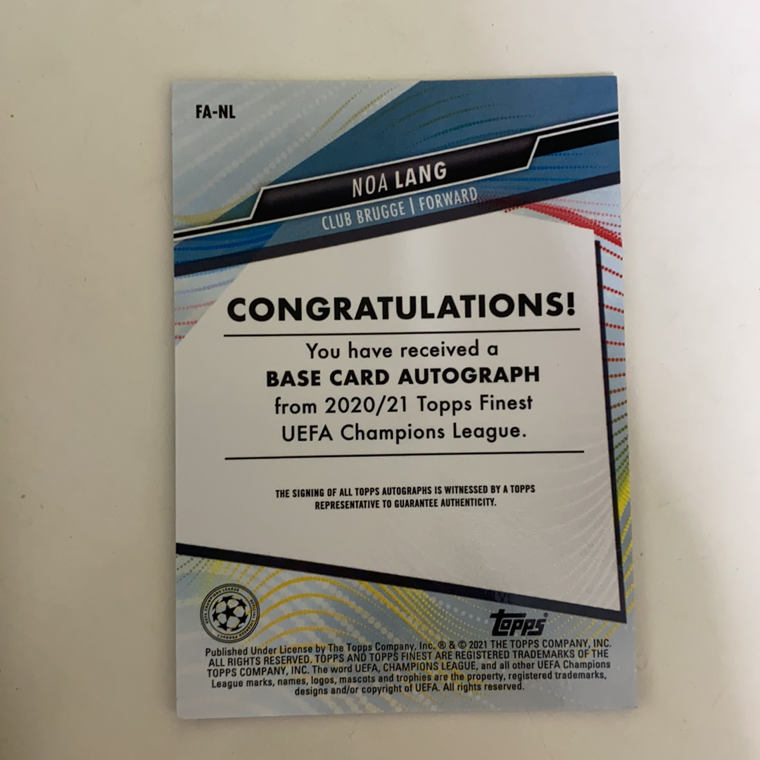 2020-21 Topps Finest Noa Lang 欧冠 诺阿朗 布鲁日 荷兰国脚 完美签字 银折卡品如图 收藏必备 喵11