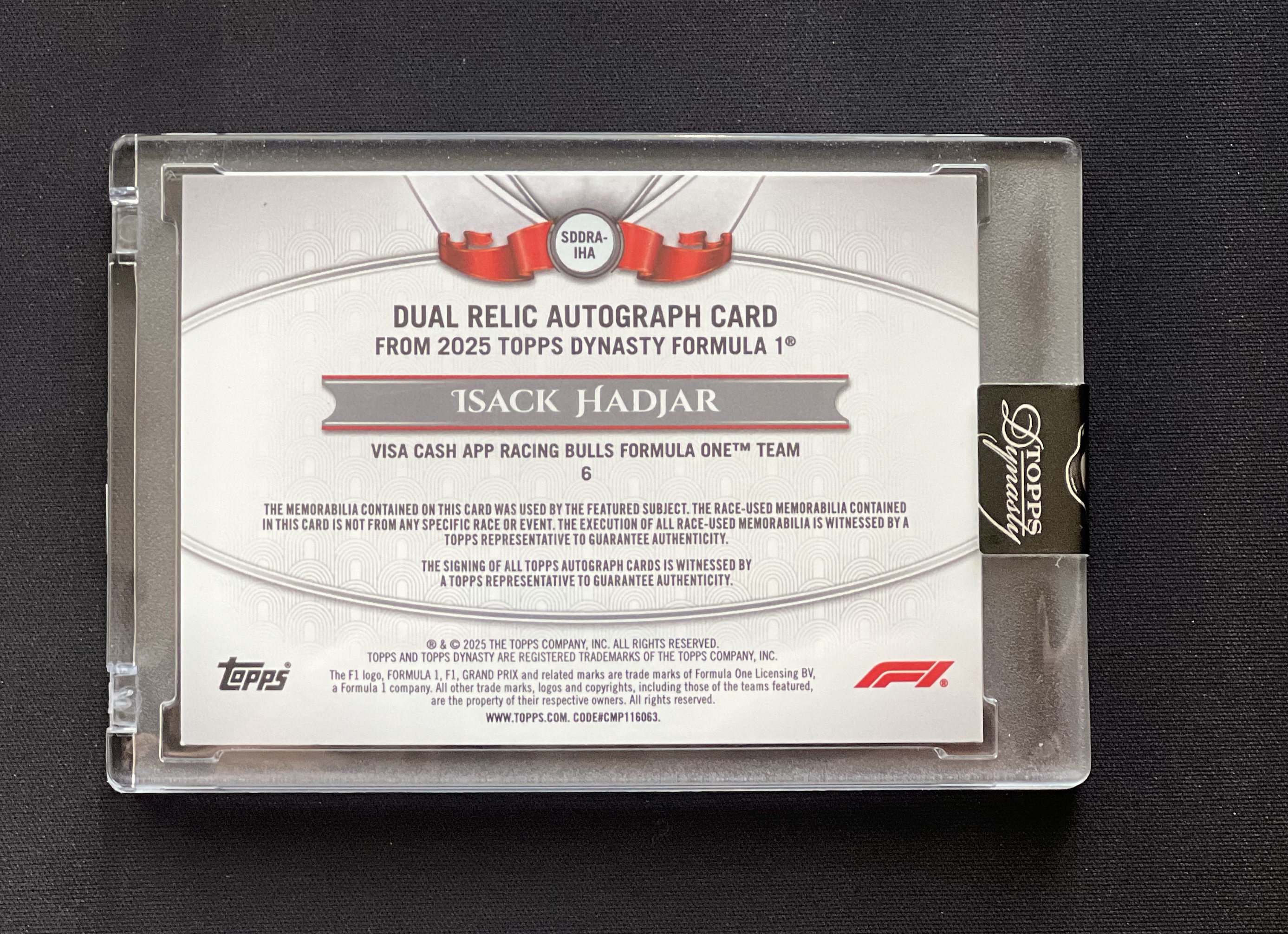 2025 Topps Dynasty ISACK HADJER RC F1高端王朝系列 小红牛车队车手 新秀 哈贾尔 09/10编双窗物料签 卡签 原封砖 收藏必备