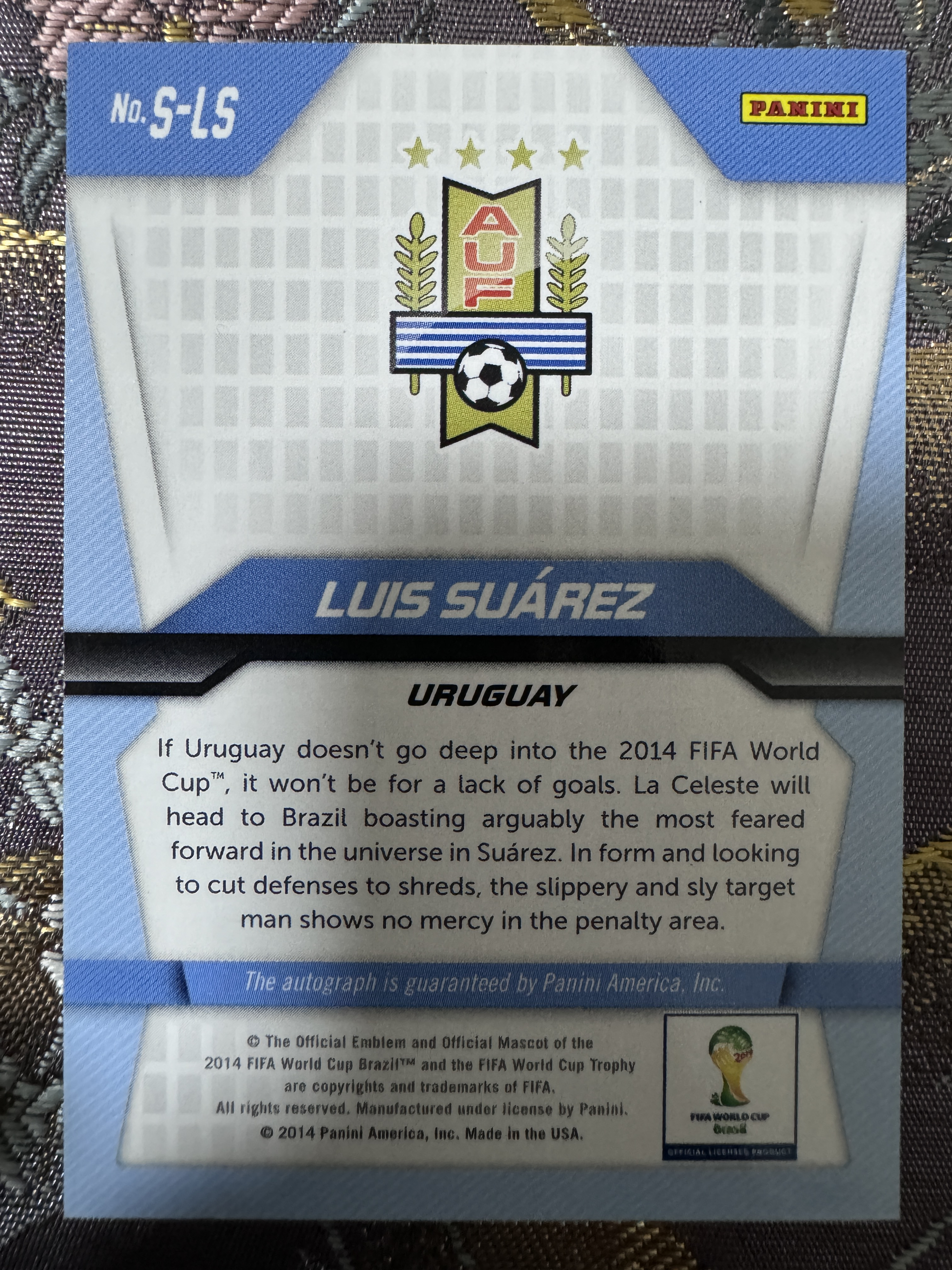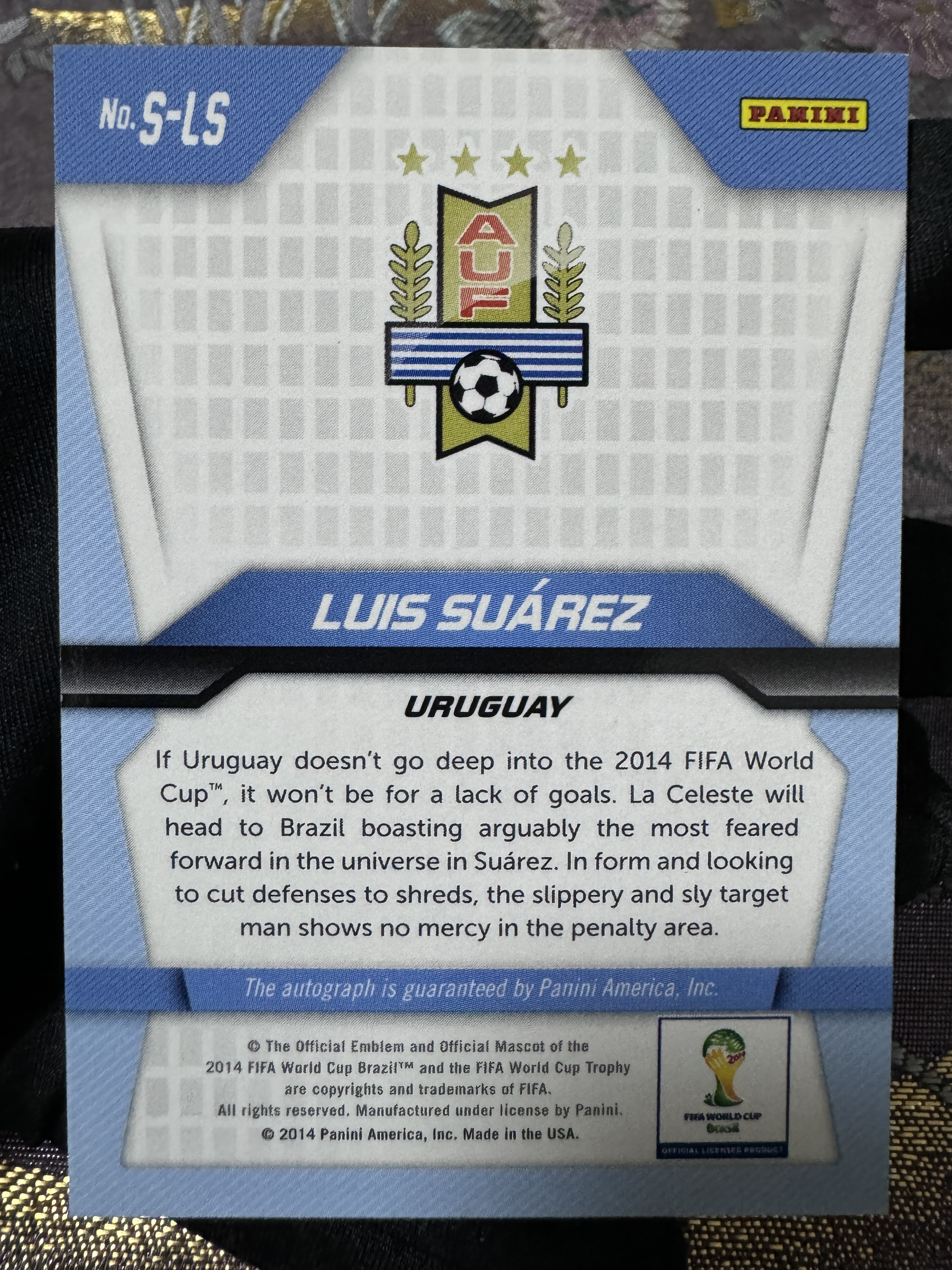 2014 Panini Prizm Luis Suárez 世界杯 元年 Prizm PZ 乌拉圭 巴萨 巴塞罗那 顶级射手 超级巨星 苏亚雷斯 苏神 咬人不疼 签字 稀有 老卡 完美墨迹 实卡精美