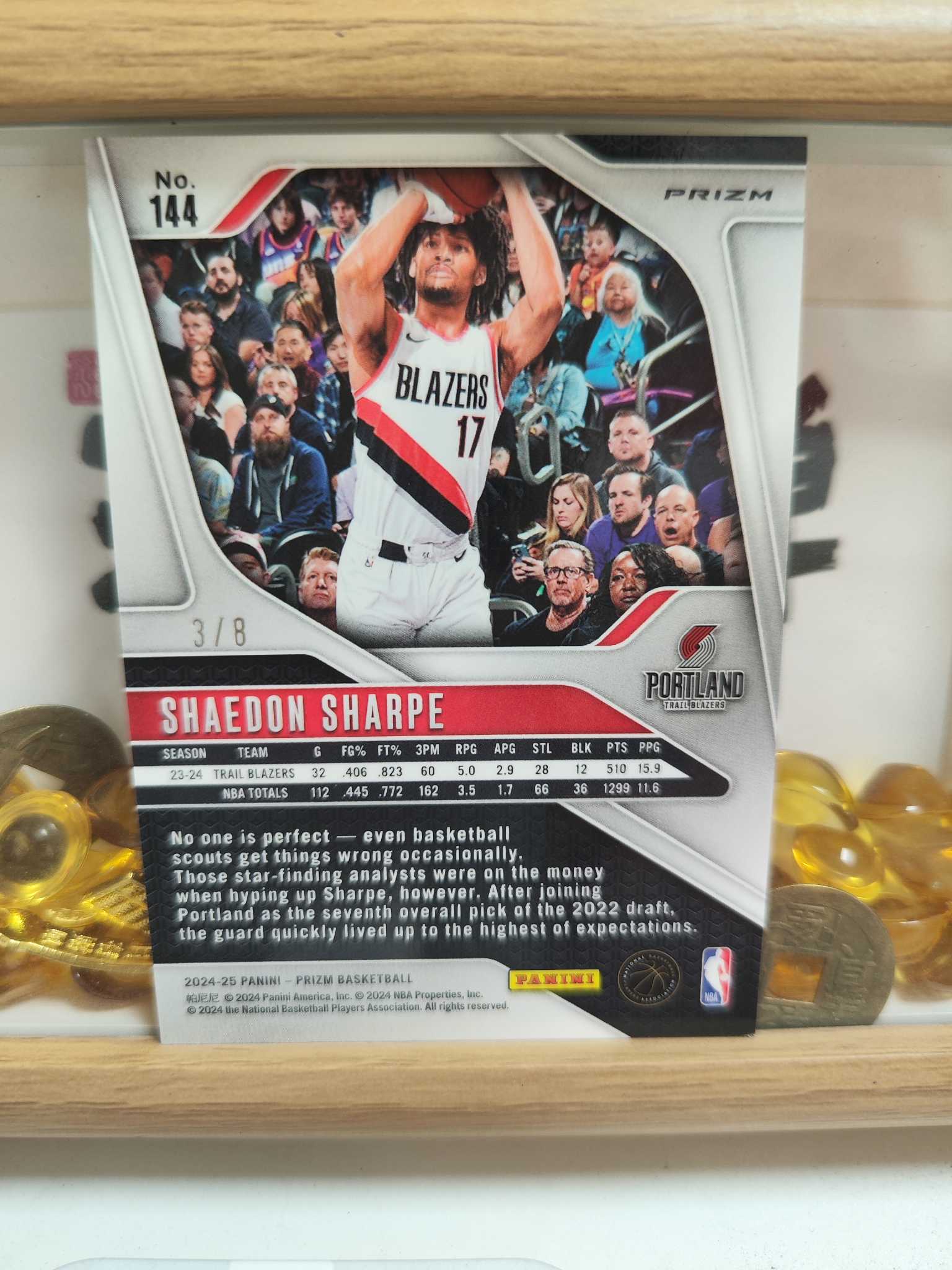 2024-25 Panini Prizm Shaedon Sharpe 夏普 pz 3/8编 超低编 卡品如图所示 不保卡品 收藏必备 f