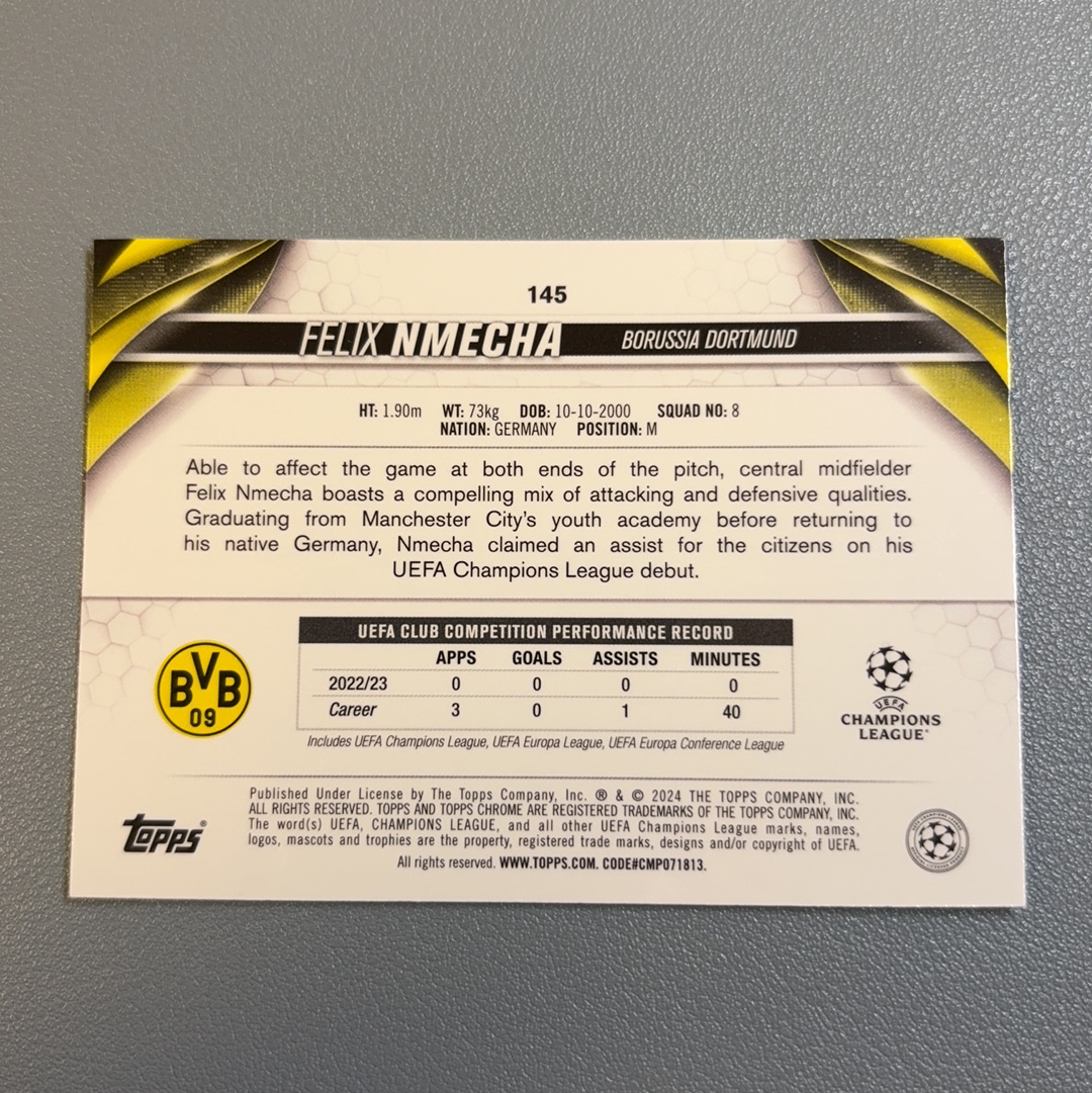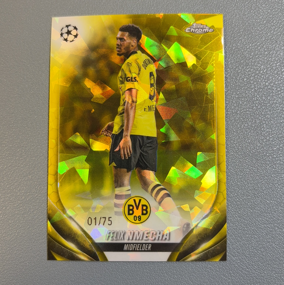 【风速狗】2023-24 Topps Sapphire Chrome 欧冠 蓝宝石 Felix Nmecha 菲利克斯 恩梅查 1/75编 德国 沃尔夫斯堡 多特蒙德 欧冠 黄碎冰 路