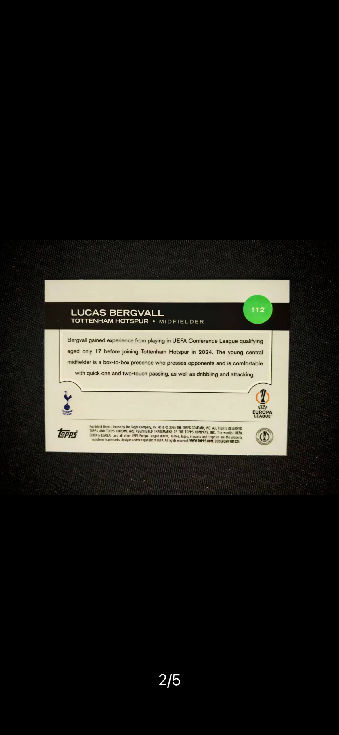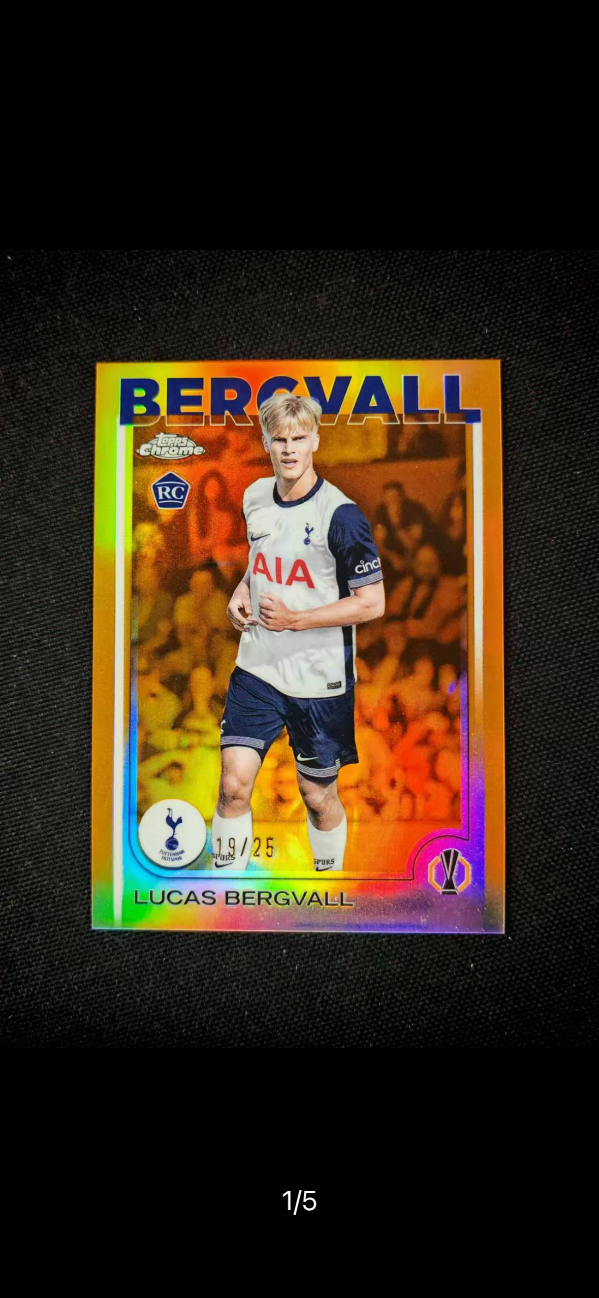 2024-25 Topps Chrome 欧战TC Lucas Bergvall RC 热刺 潜力新秀 贝里瓦尔 19/25编 橙折 微瑕 磨痕 C罗 梅西迷弟