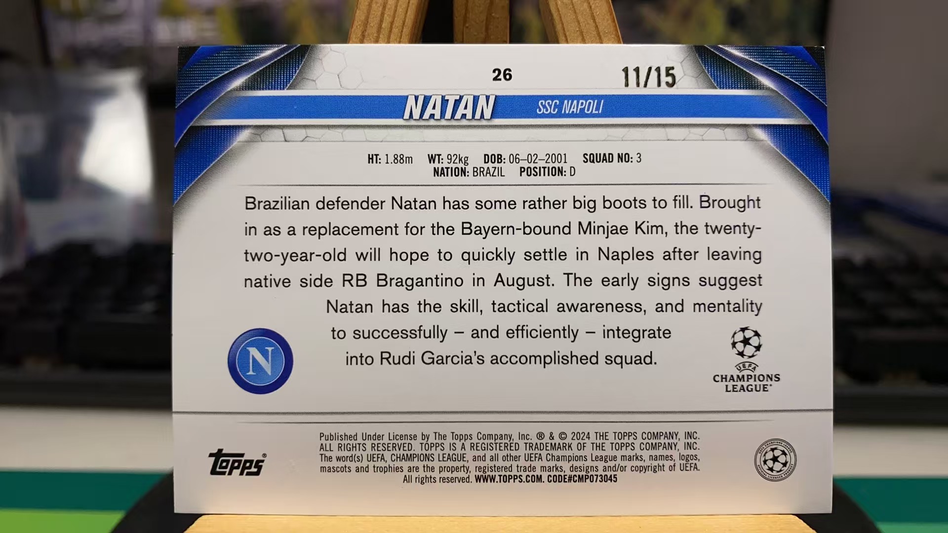 卡品说明:卡品如图为一般通行品,请参拍前仔细查看图片,也可以咨询本店索要卡图,参拍视为接受卡品,拍下后不接受以卡品为理由的任何不进行交易的行为。国宝、IMM 、小真金、Noir等厚的卡普遍会有白边白角、卡面有轻印都属于通行品。Prizm、 Select、 Optic、 IMM等折射、镜面卡片有小划痕、小印记或非人为卡片制作印刷的问题属于正常通行品。要保证评级金标的请直接购买评级卡,请有强迫症、品相控的卡迷请绕道和谨慎出价