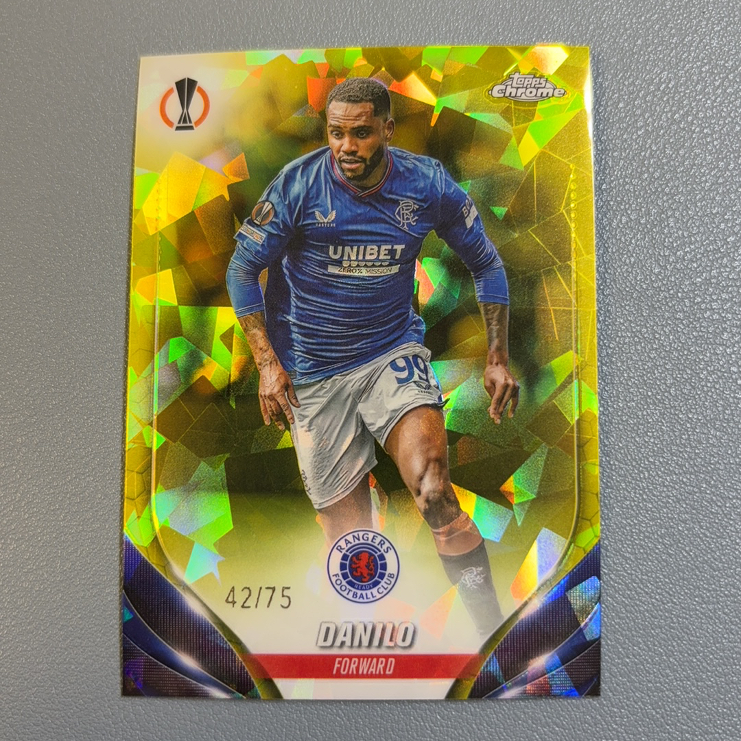 【风速狗】2023-24 Topps Sapphire Chrome 欧冠 蓝宝石 流浪者 Danilo 达尼洛 42/75编 黄碎冰 路