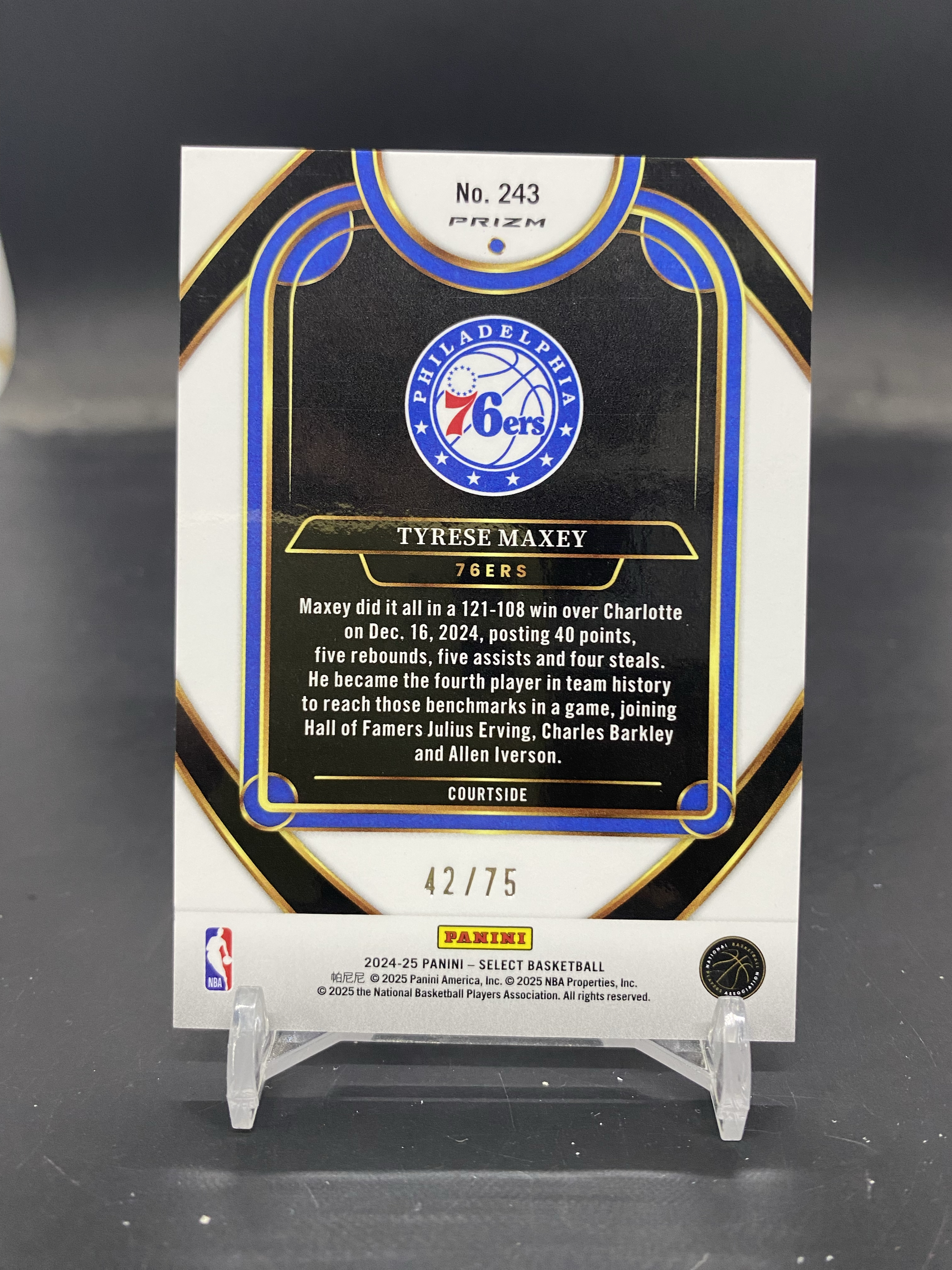 2024-25 Panini Select Tyrese Maxey 76人 泰雷塞 马克西 42/75编 蓝波纹折 3级三级 折射 印刷线 卡品如图AY-55「80」
