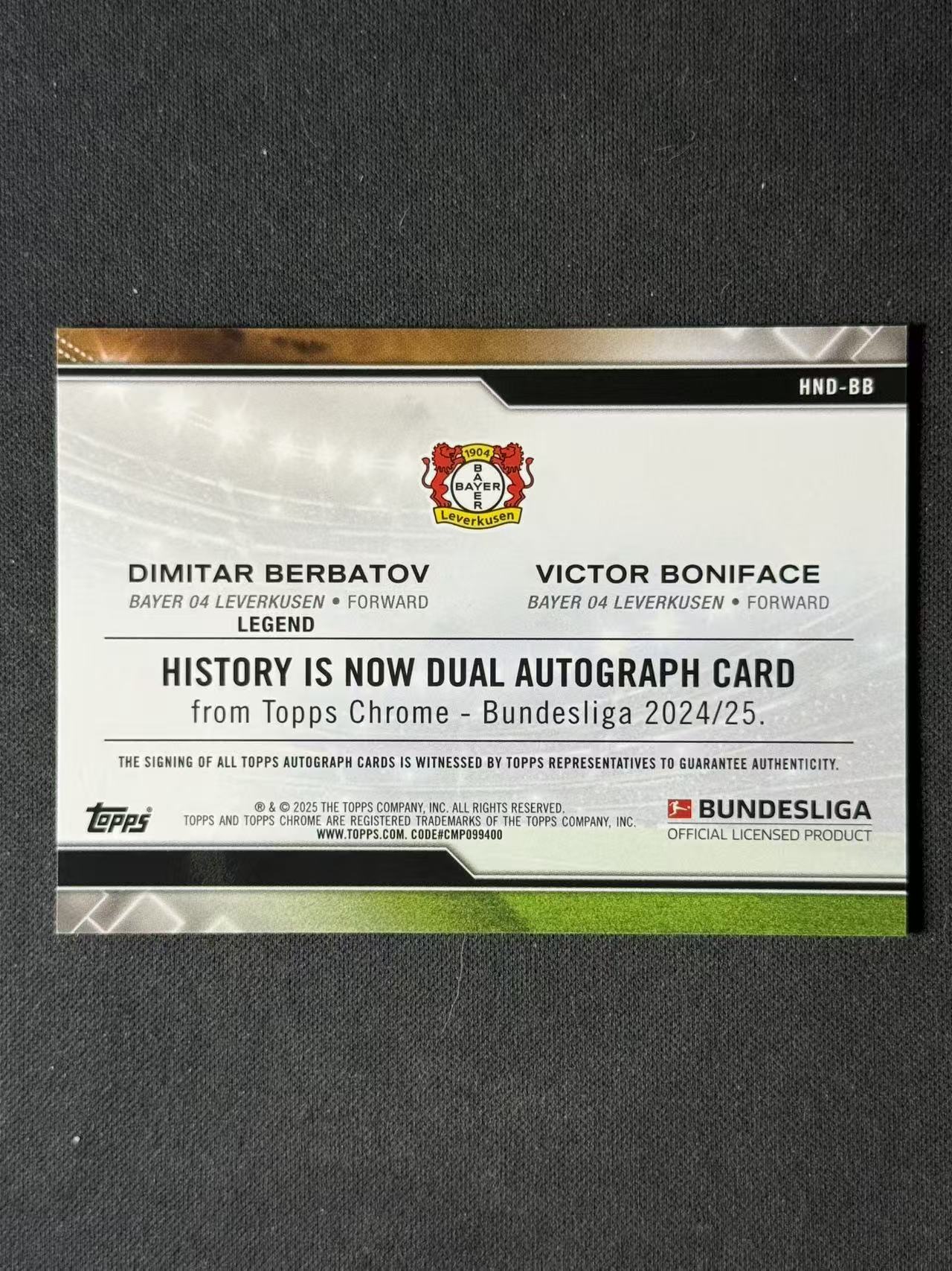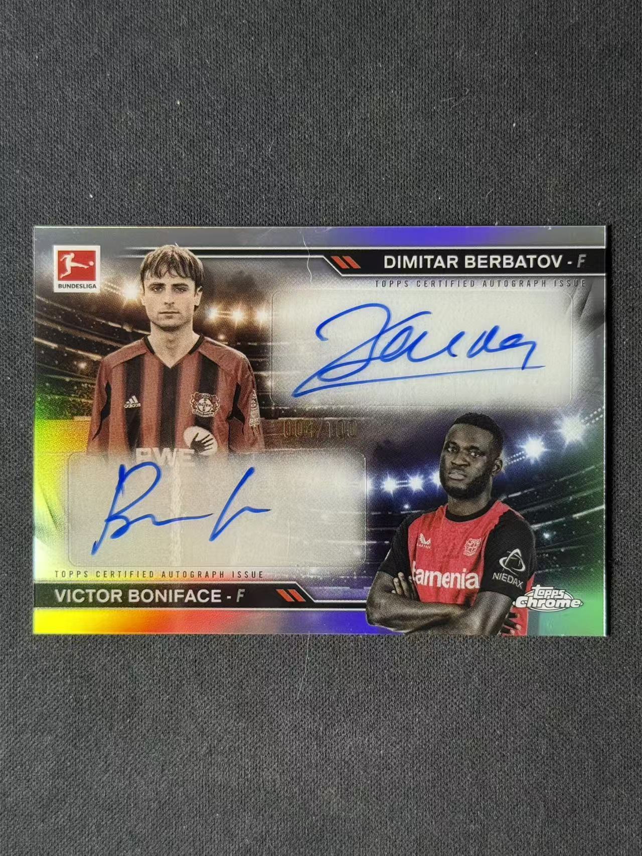 2025 Topps Chrome Dimitar Berbatov 【林林拍卖张彩虹】tc系列 德甲 勒沃库森 贝尔巴托夫 博尼法斯 004/100编 银折 双人签字 瑕疵见图