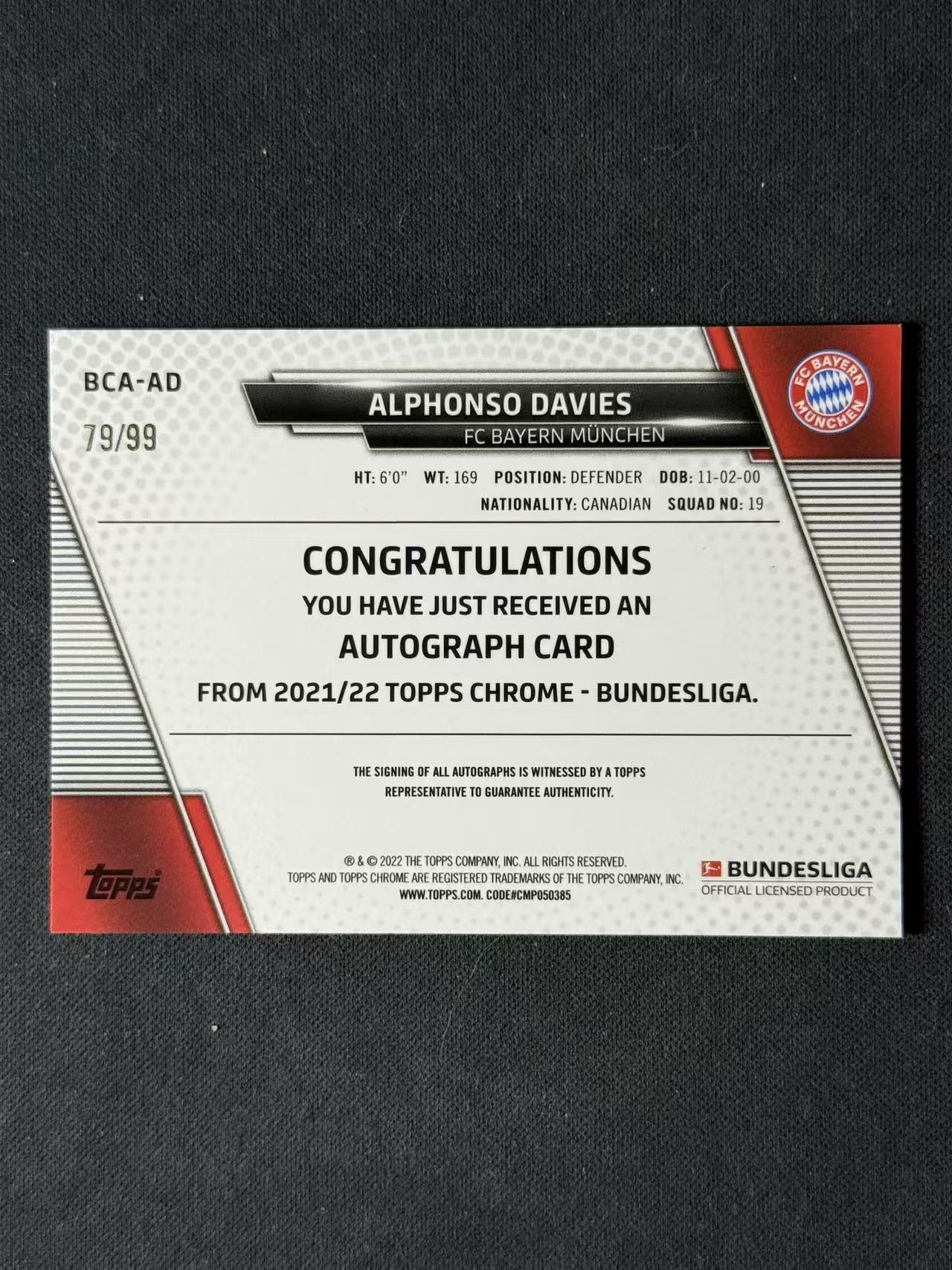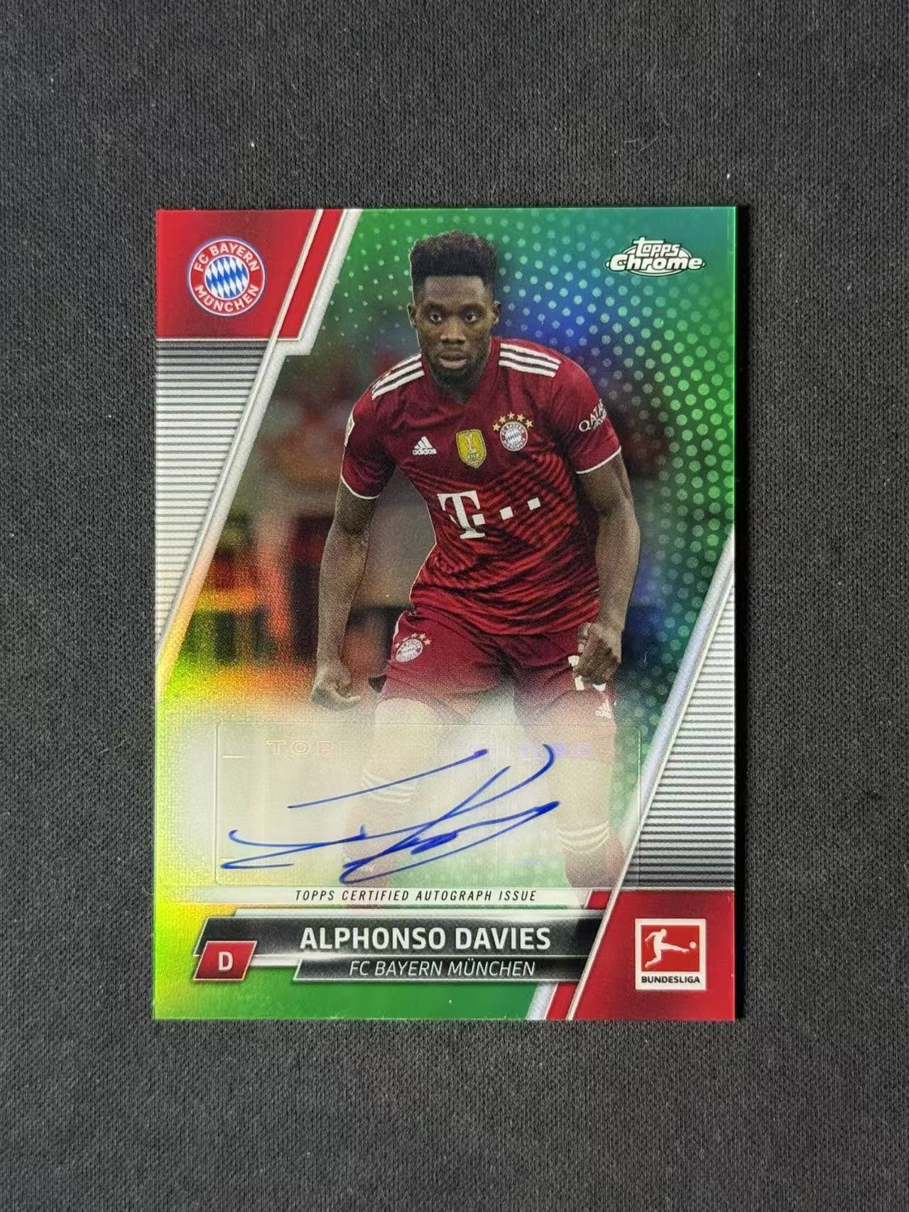 2022 Topps Chrome Alphonso Davies 【林林拍卖张彩虹】tc系列 德甲 拜仁慕尼黑 阿方索戴维斯 79/99编 绿折 签字 瑕疵见图
