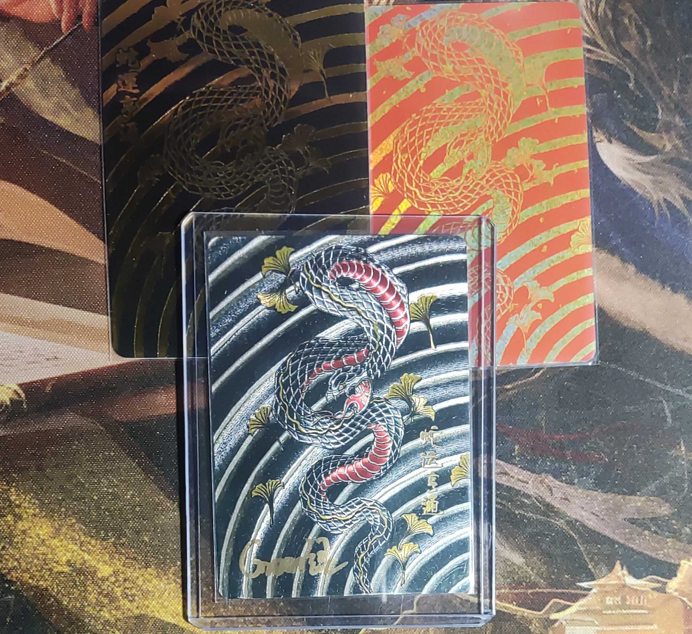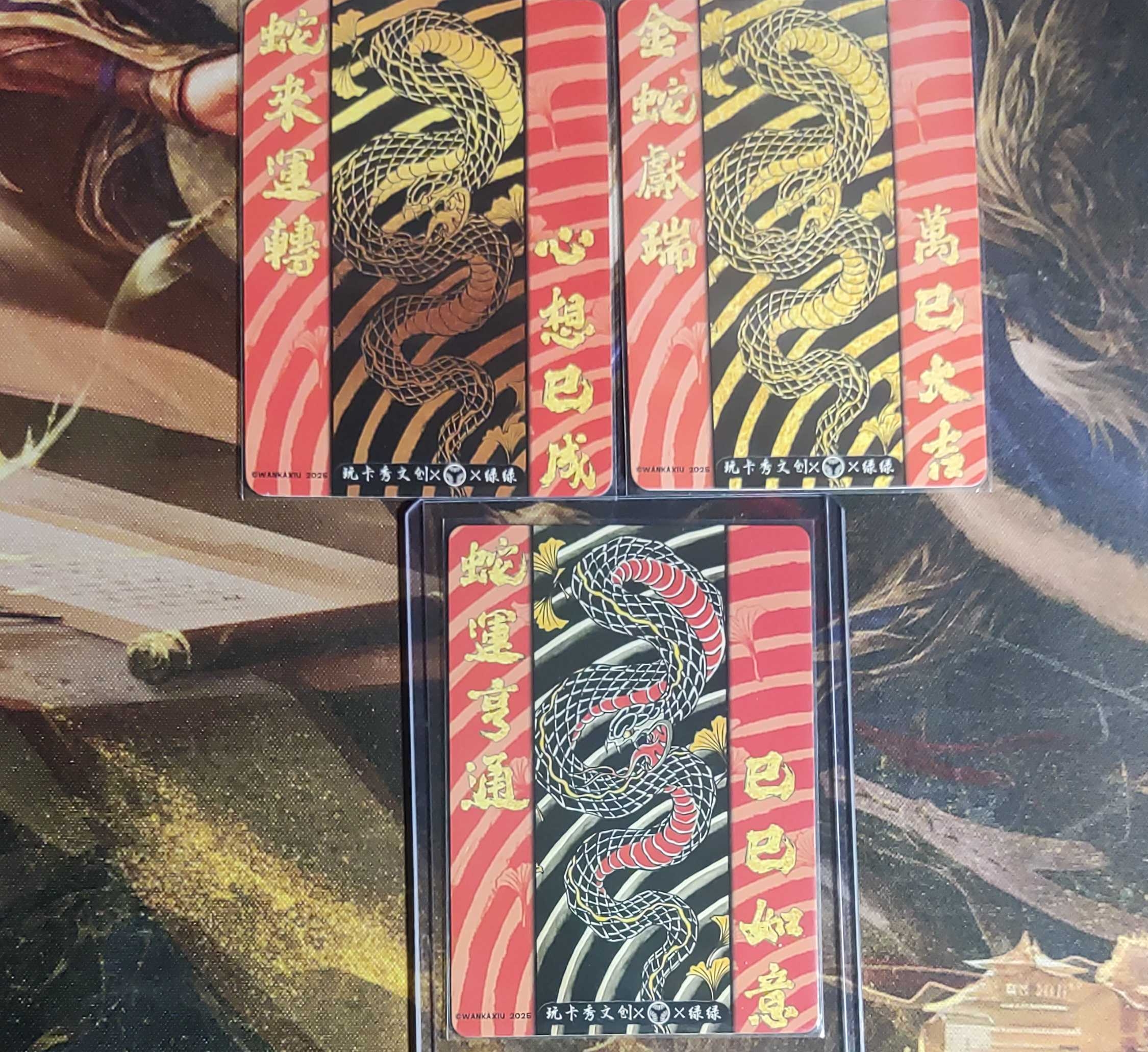 绿绿蛇年生肖纪念特卡三张画师亲签粗闪