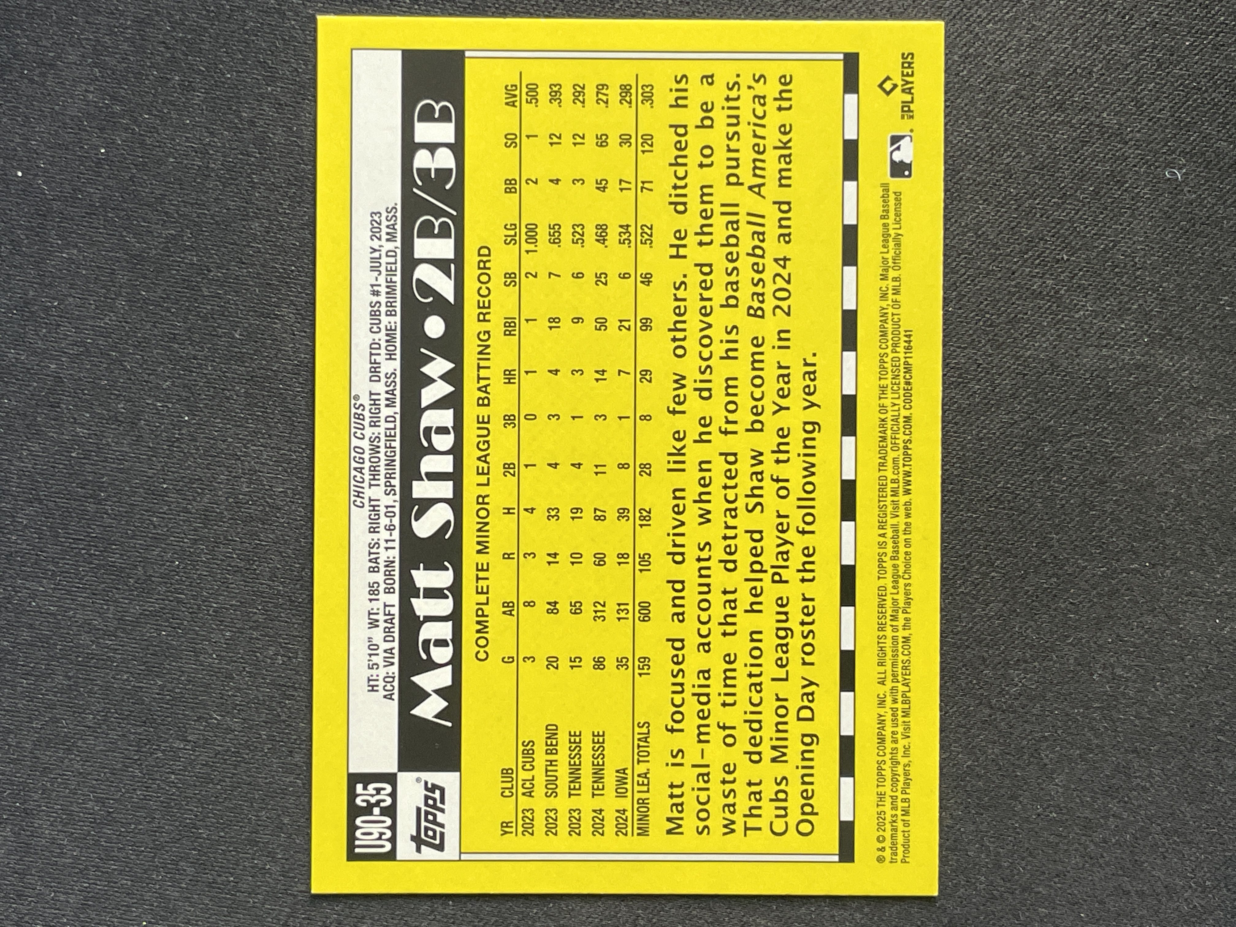 【南昌NOVA】2025 Topps MLB Matt Shaw RC 棒球 小熊 新秀 马特 肖 折射 35Th 复古 特卡 Z18bobo