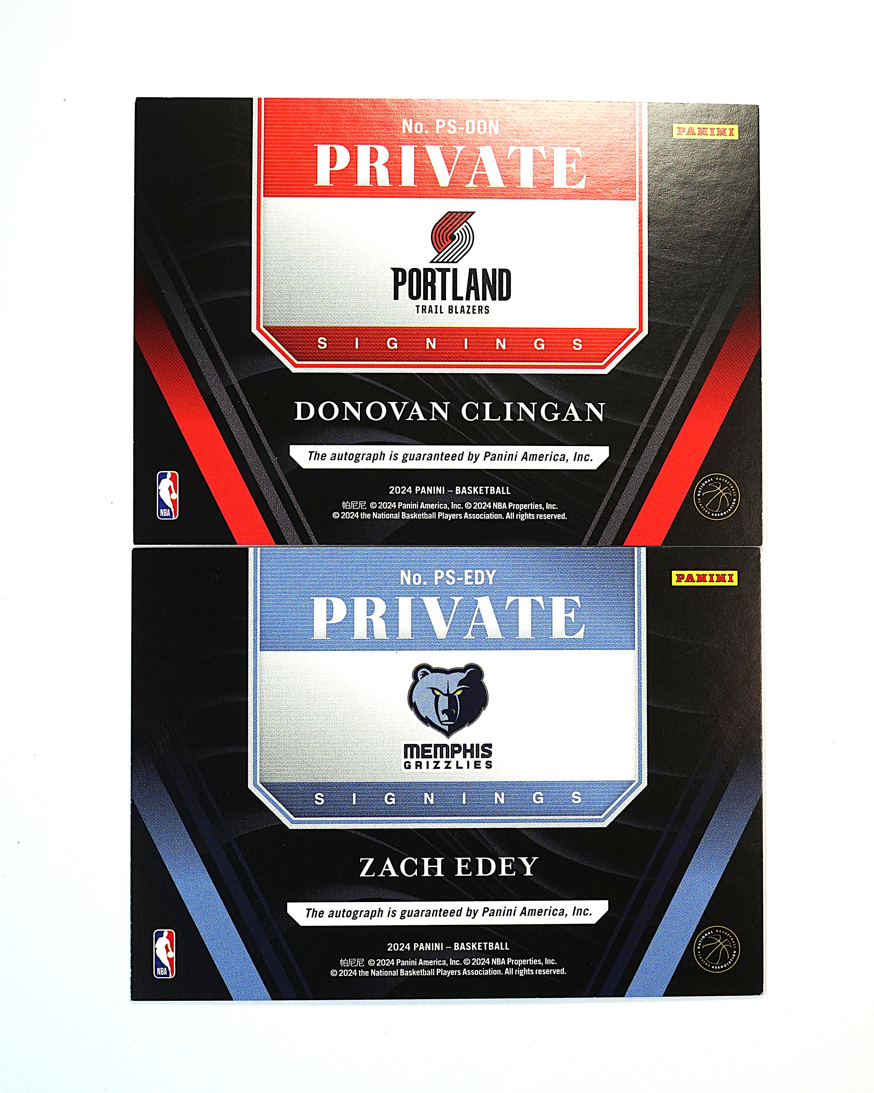 2024 Panini Private Zach Edey RC 扎克 伊迪 多诺万 克林根 新秀 签字 卡签 插入签 周志豪 灰熊 开拓者 莫兰特 杨瀚森队友 一图2张一起拍 Lot不保卡品