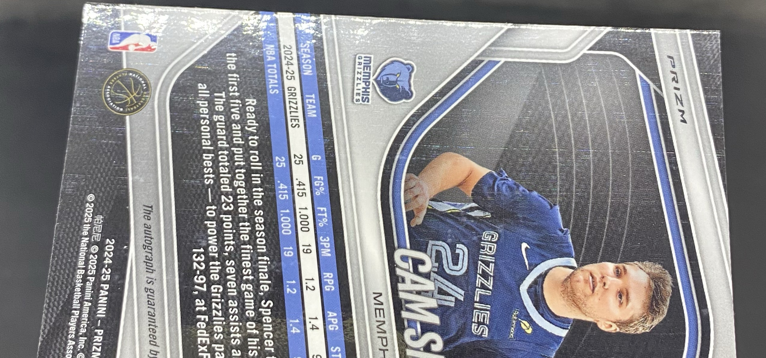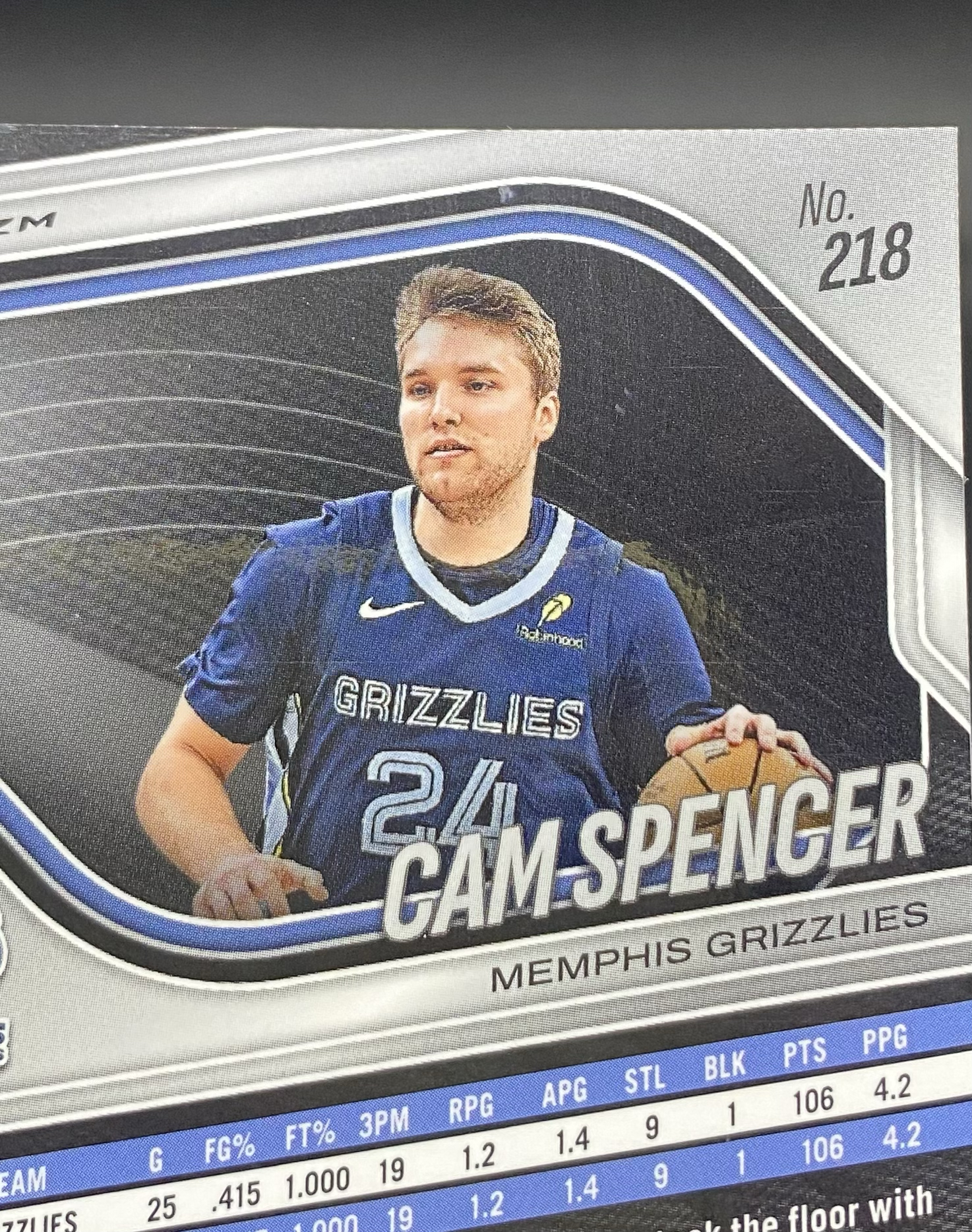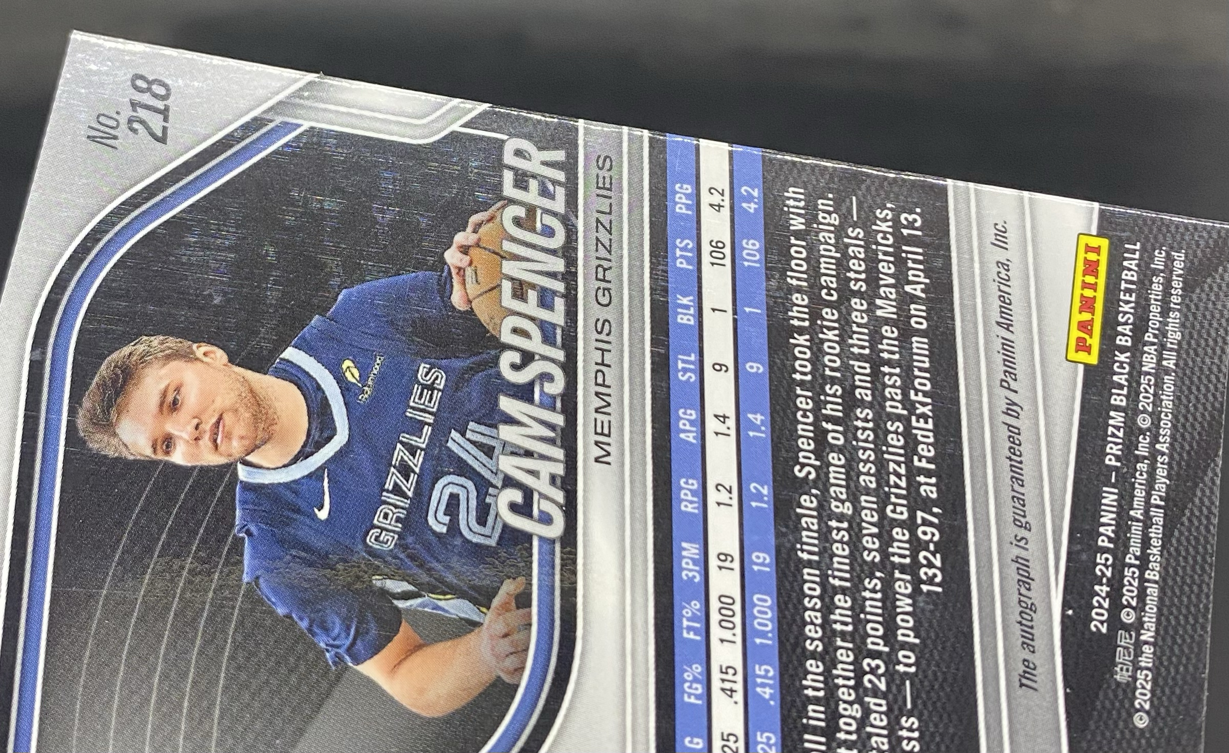 2024-25 Panini Prizm Black Cam Spencer RC pz 灰熊 新秀 卡姆 斯潘塞 银折 签字 签名 折射 印痕 瑕疵如图AY-74「80」