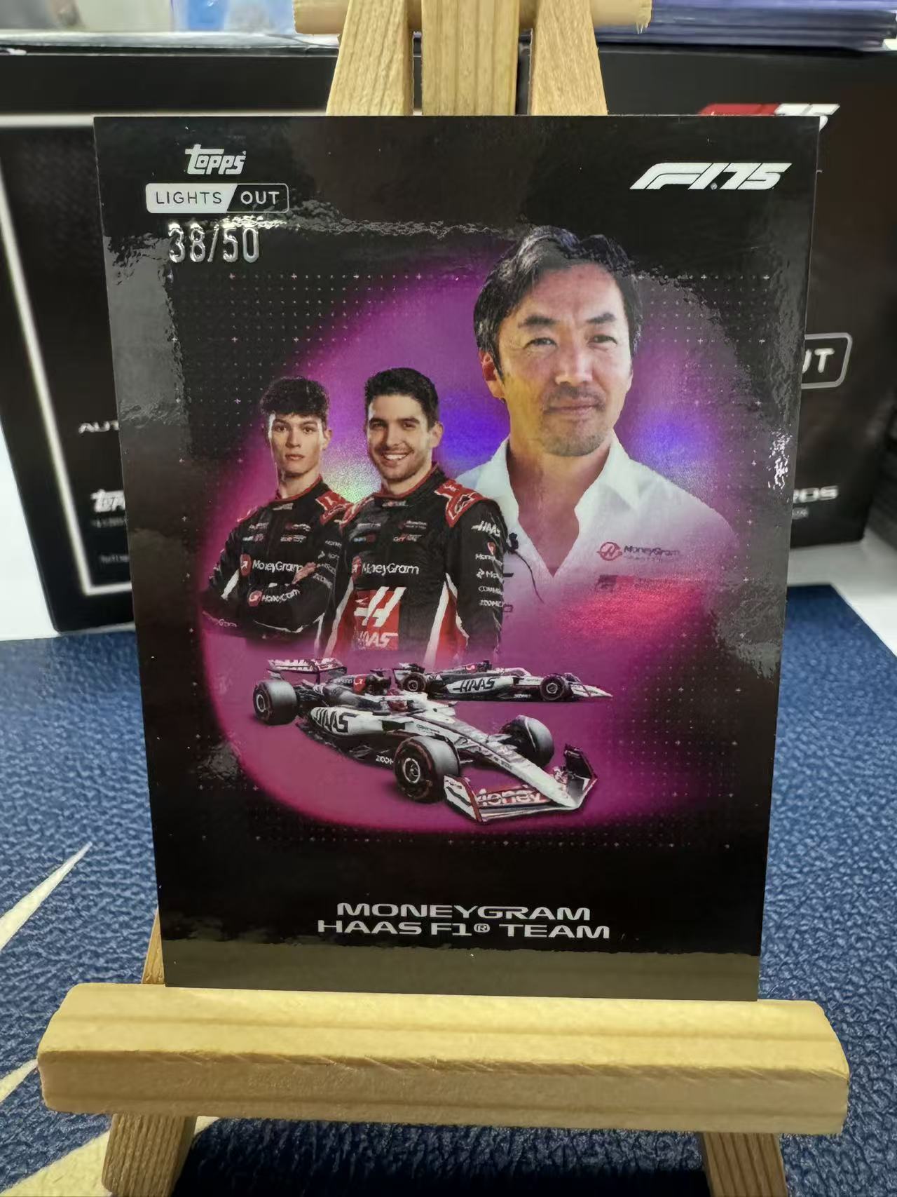 Topps F1 Lights Out 2025熄灯系列MONEYGRAM HAAS F1 TEAM车队三人合集编号38/50,品相完好,带卡膜保护适合F1车迷和收藏爱好者