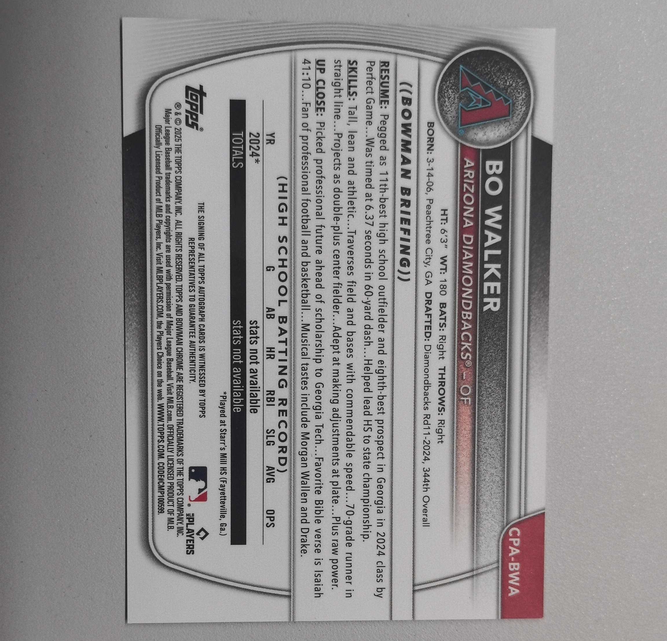 2025 Topps 【锡安代卖】 累计照常 棒球mlb bowman 1st新秀签字卡签 亚利桑那响尾蛇热门新秀大物 Bo Walker 卡品如图 卖卡锡