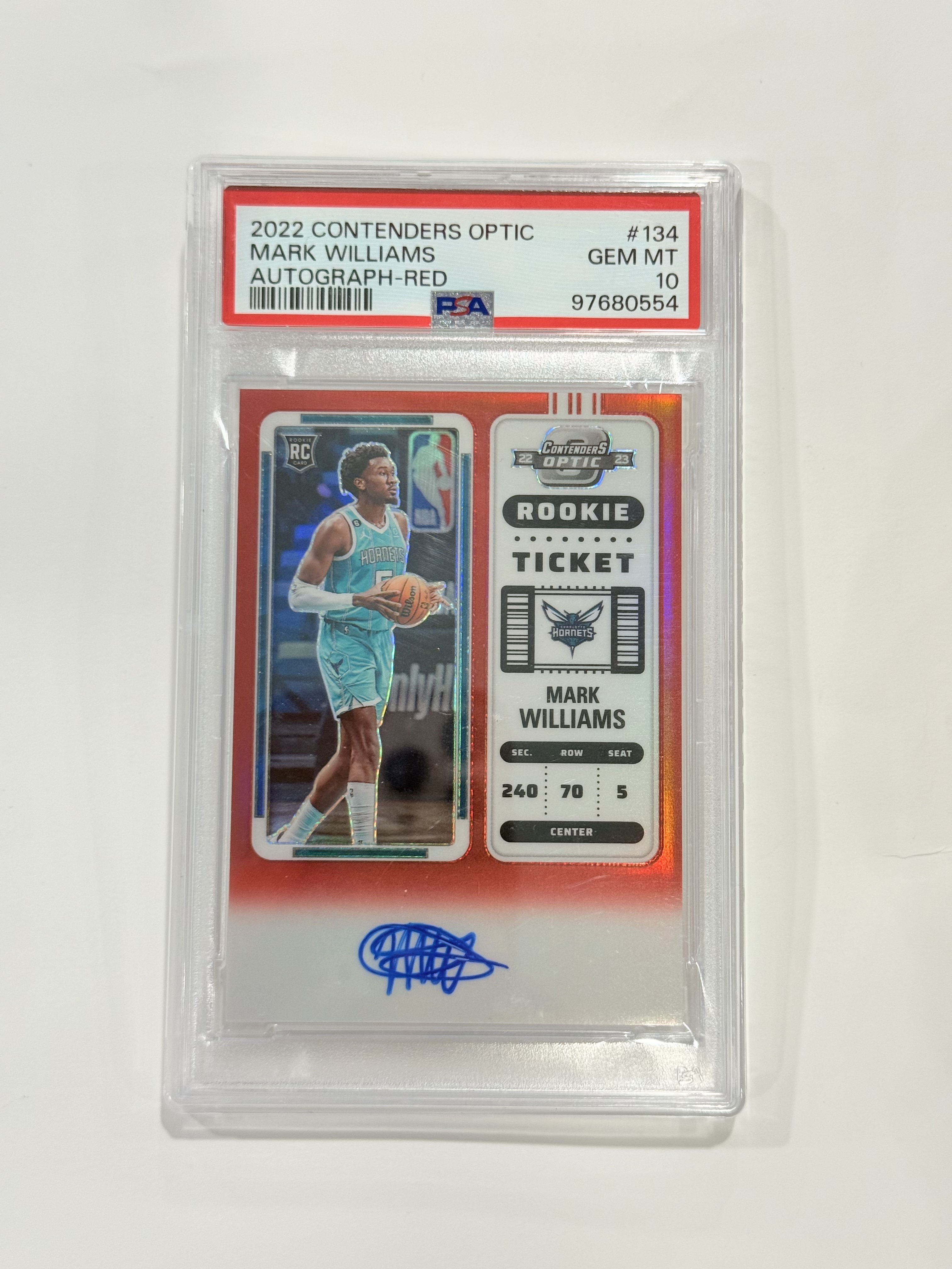 2022-23 Panini Contenders Optic Mark Williams RC 黄蜂 新秀 马克威廉姆斯 PSA10 49/99编红折球票签字  完美品相卡签 布克米勒三球对位杨瀚森