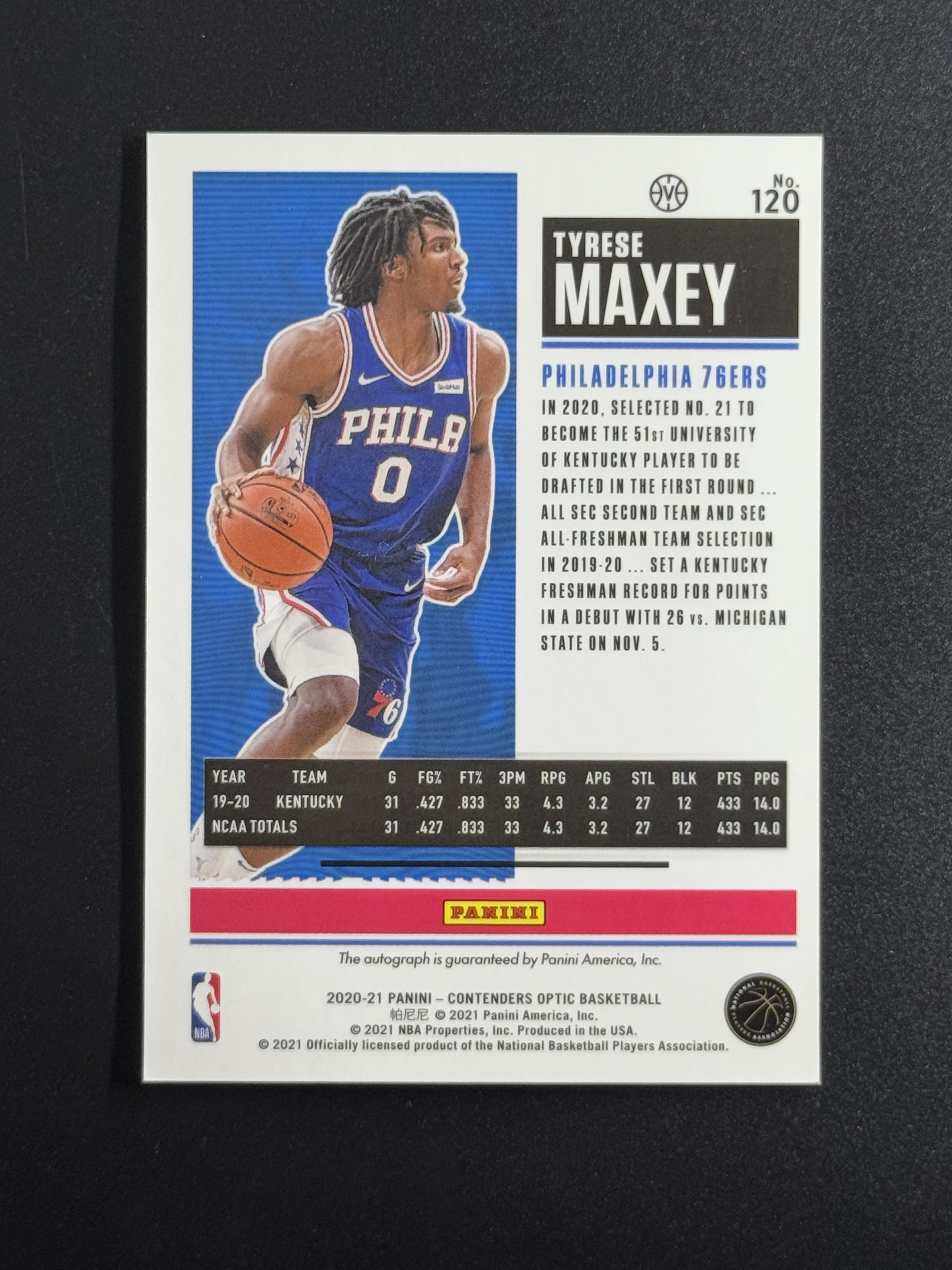 2020-21 Panini Contenders Optic Tyrese Maxey RC 【小花猪代卖】 泰雷塞 马克西 新秀 RC 签字 卡签 球票 OP 折射 银折 76人(江南