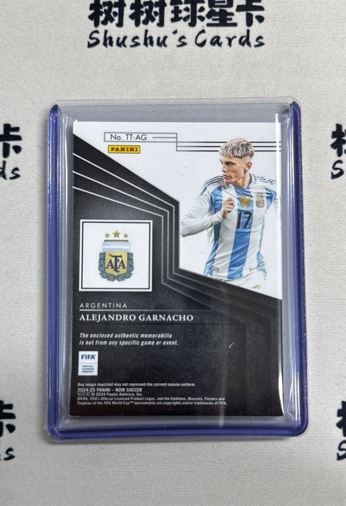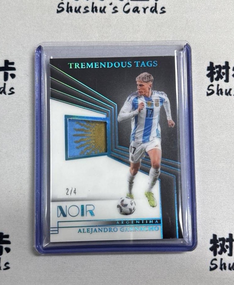2025-26 Panini Noir Alejandro Garnacho 加纳乔 曼联 阿根廷 梅西接班人 全网首张 镜面湖水蓝 暴力切割TAG 切到队徽 2/4编 尾编 世界杯年投资佳品