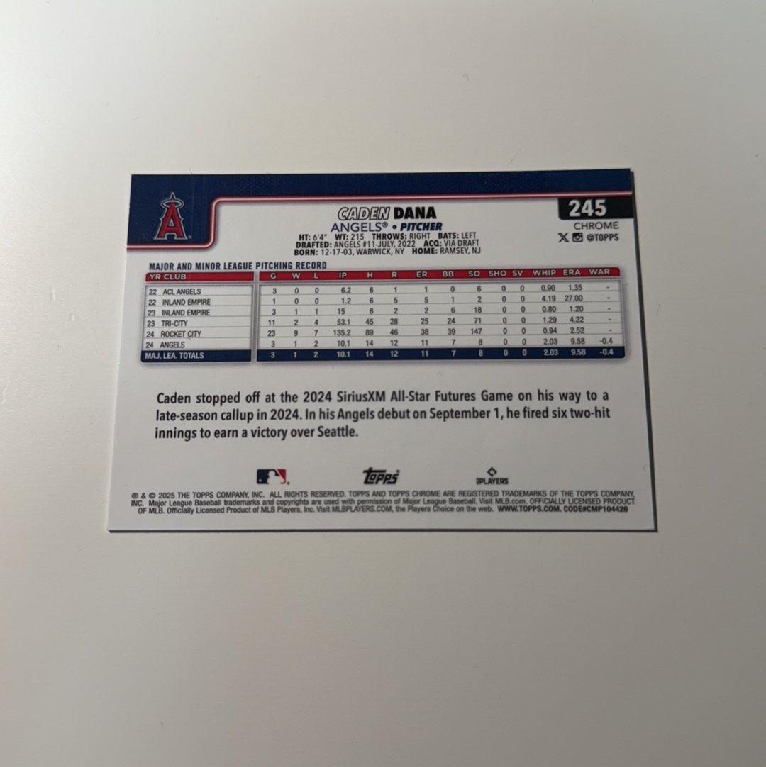 2025 Topps 【锡安代卖】 累计照常 棒球mlb Chrome Baseball Caden Dana 棒球 卡登 达纳 199编 卡品如图 春总