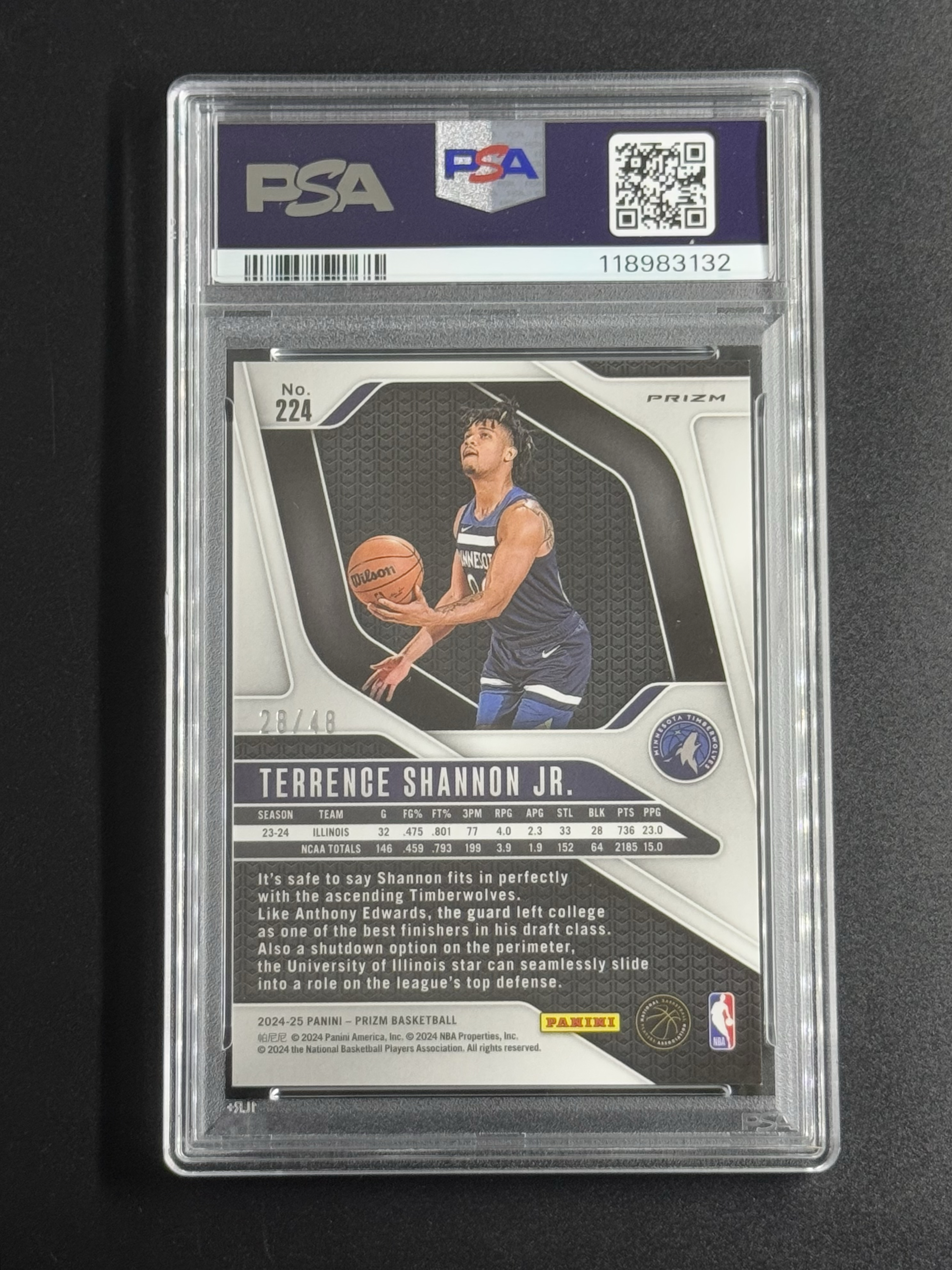 2024-25 Panini Prizm Terrence Shannon Jr. RC 【小花猪代卖】森林狼 小特伦斯 香农 新秀 RC 48编 青蛇折 绿龙鳞折 PSA9分(air